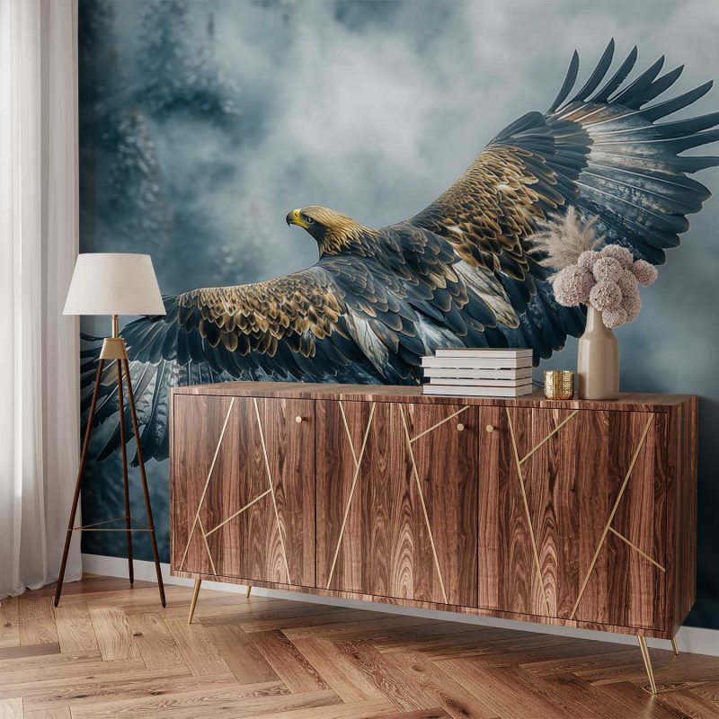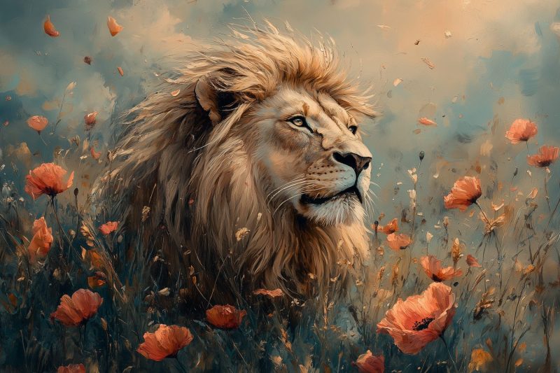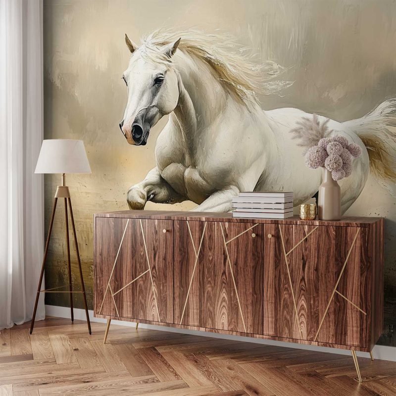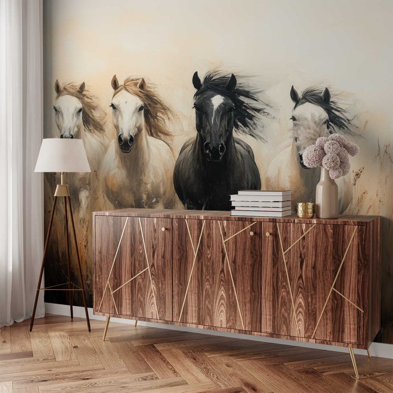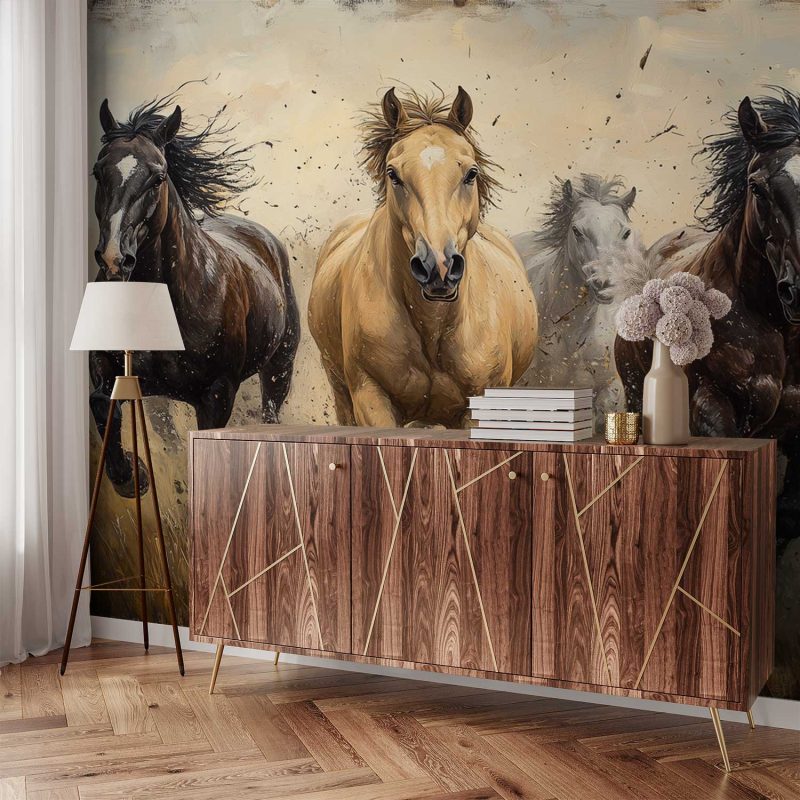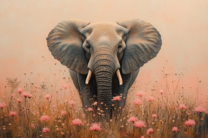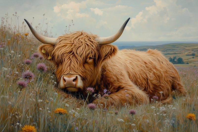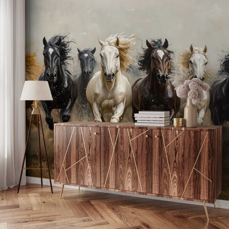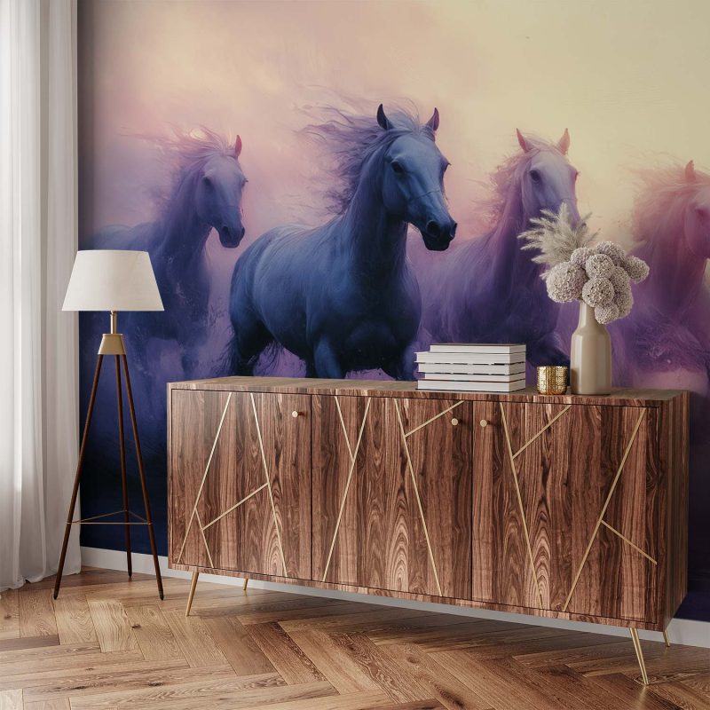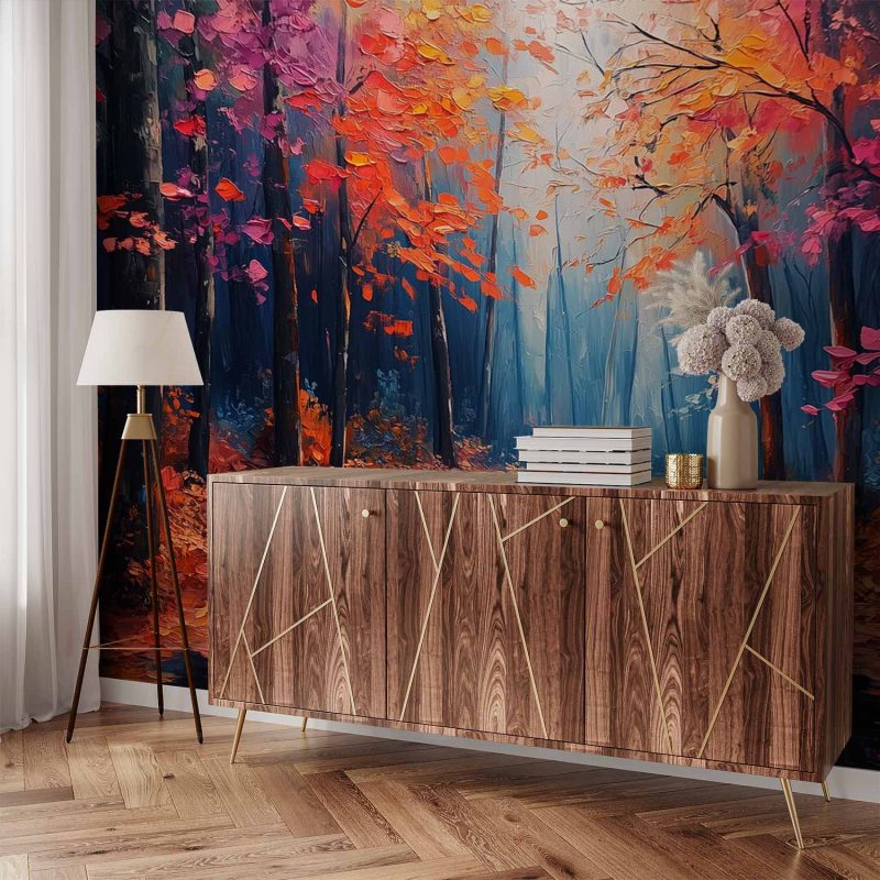 Kleurrijk bloemenveld onder wolkenlucht behang