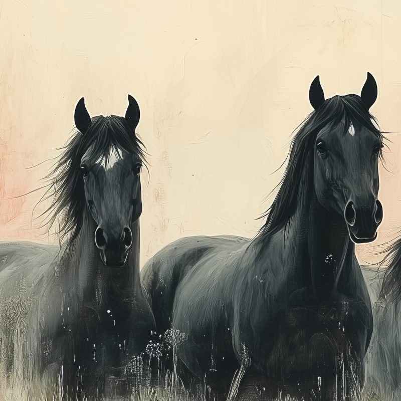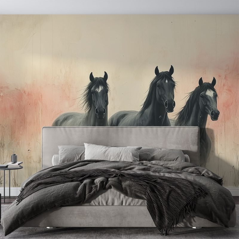 Drie paarden in veld behang