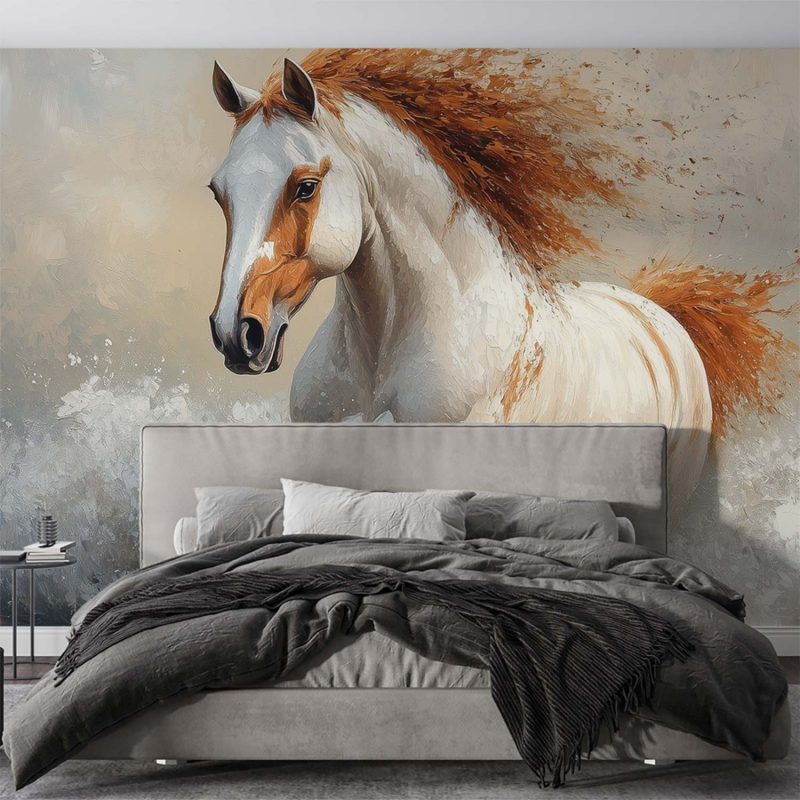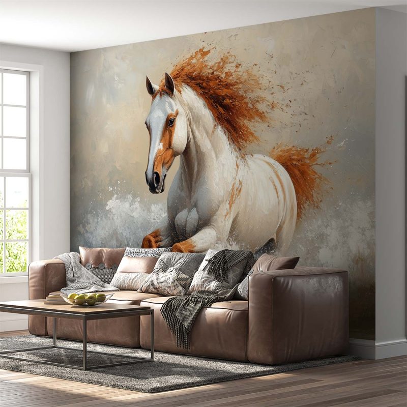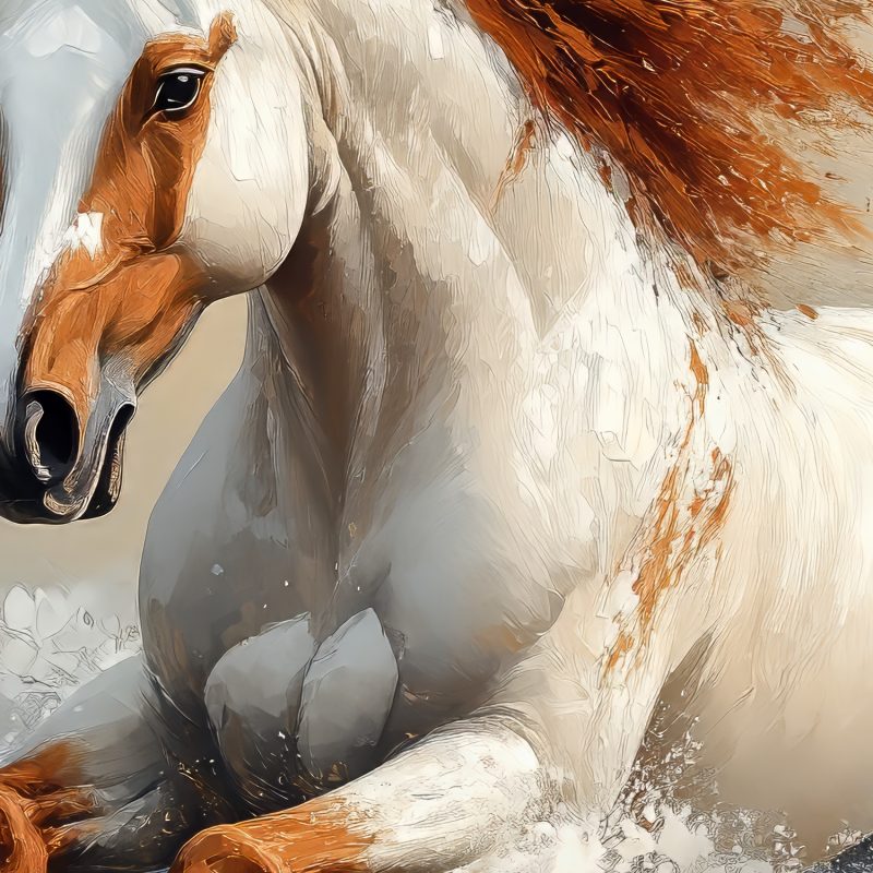 Vurig oranje en wit vangen de kracht van een paard dat door het water galoppeert. Losse penseelstreken geven energie aan elke beweging. Dit levendige kunstwerk brengt pure dynamiek en natuurlijke schoonheid in je ruimte. De centrale compositie trekt meteen de aandacht en creëert een gevoel van vrijheid. Perfect voor wie verlangt naar een statement vol leven en emotie in het interieur.