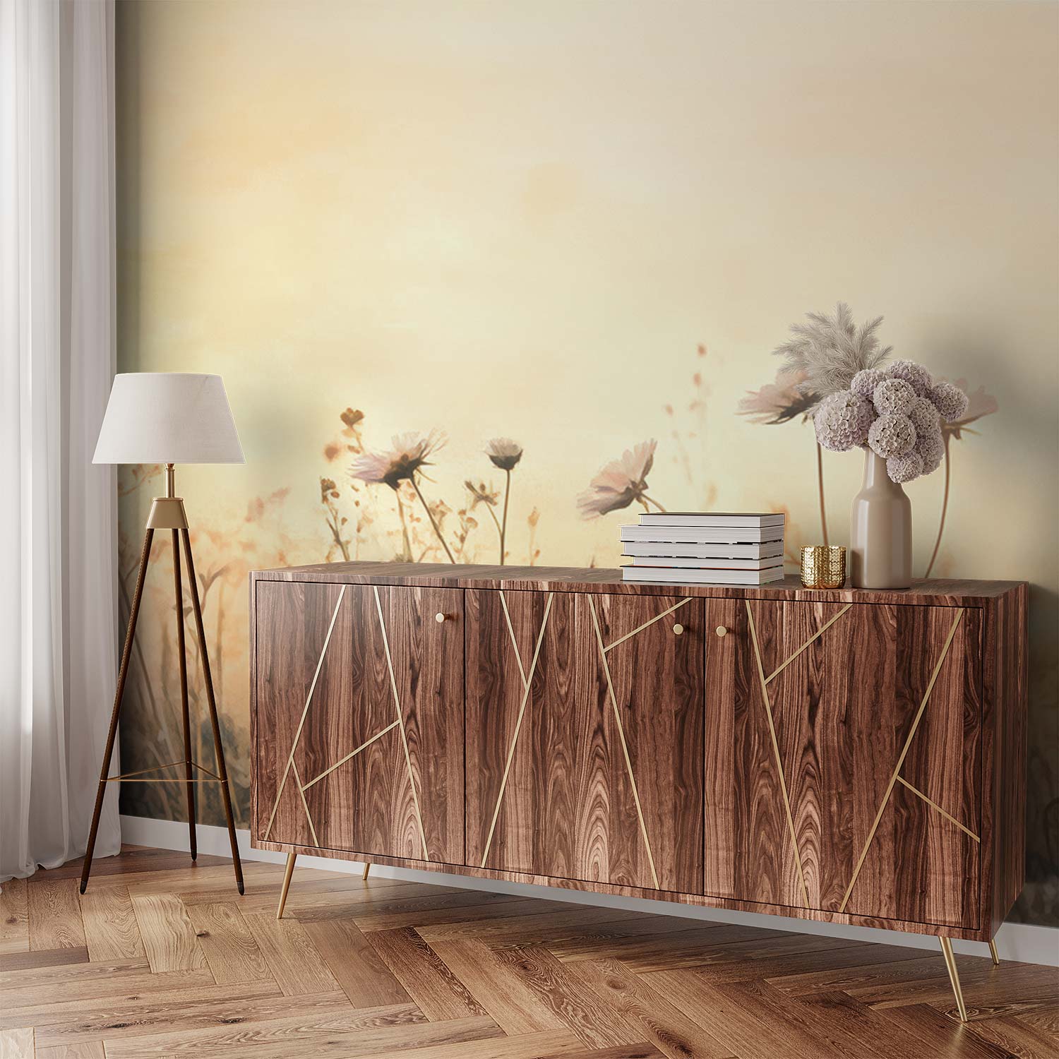 Gouden Bloemenweide Gloed behang
