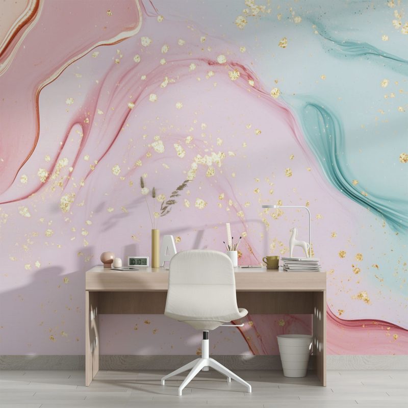 Dansende tinten roze, blauw en groen vloeien sierlijk in elkaar over als een levendig schouwspel. Gouden glitter vonkt als stofjes in een zonnestraal, diepte en luxe toevoegend aan dit moderne kunstwerk. Zijn energieke uitstraling brengt dynamiek in elke ruimte, perfect voor wie verfijning met speelse elegantie wil combineren.