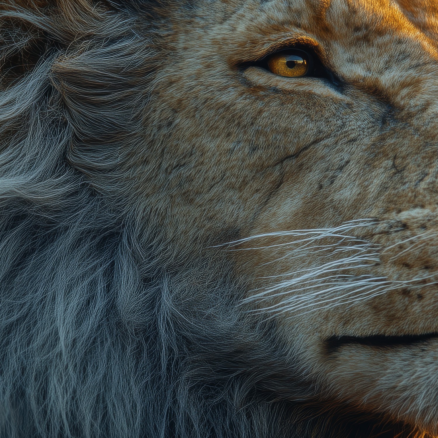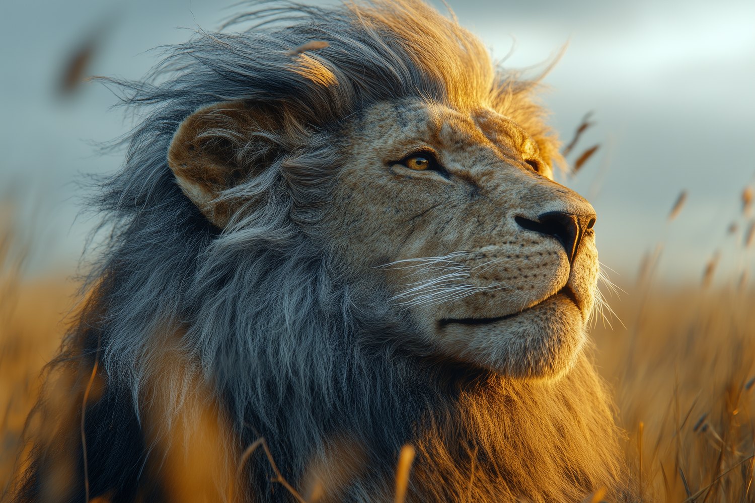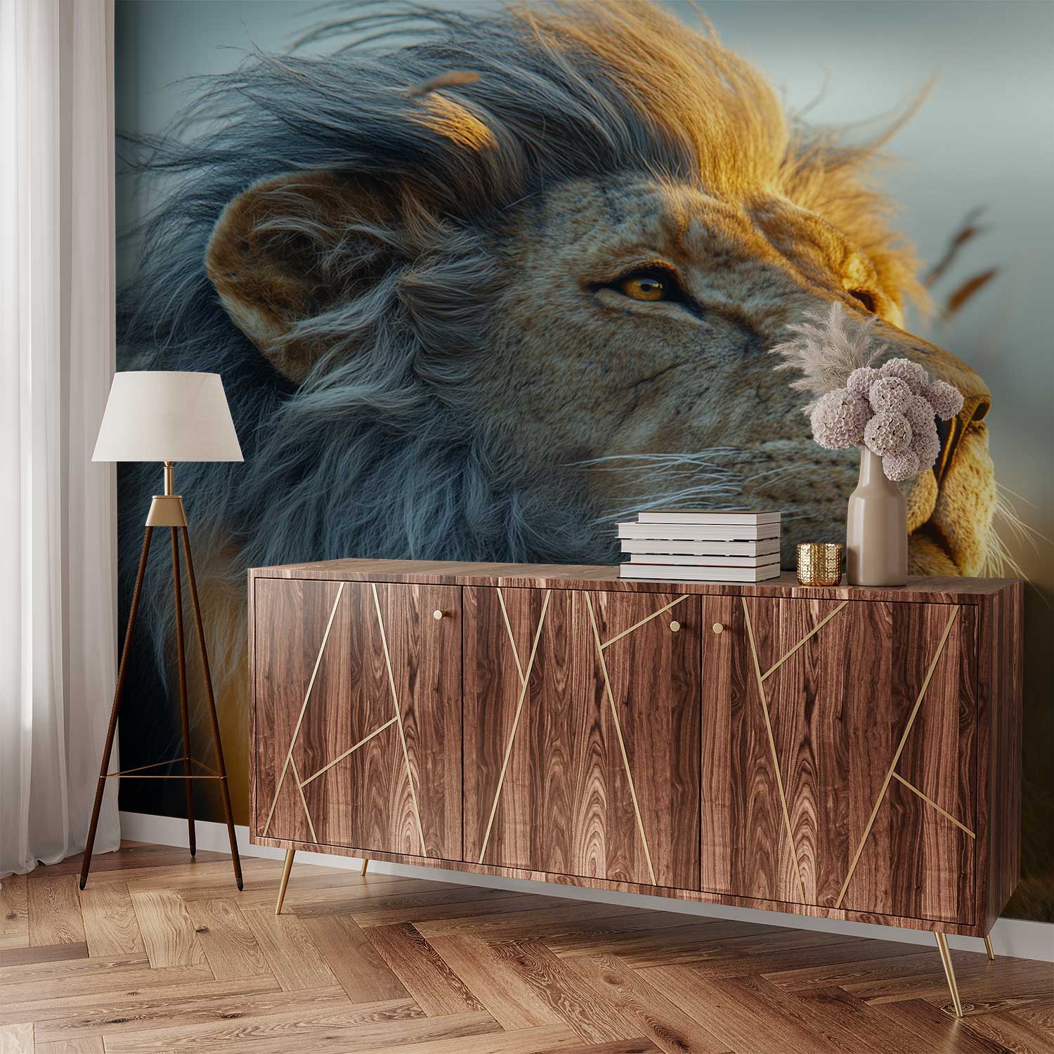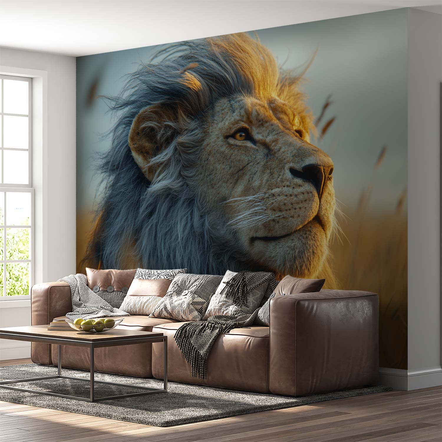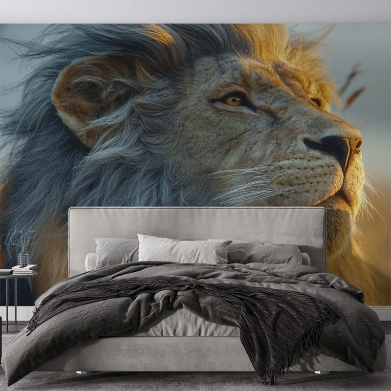 Gouden zonnestralen omkransen de koning der dieren in zijn natuurlijke rijk. Deze trotse leeuw met weelderige manen kijkt peinzend over het hoge gras. Zijn serene aanwezigheid brengt rust en warmte in je interieur, terwijl de natuurlijke tinten harmonieus samenspelen met elk kleurenschema. Dit levendige tafereel transformeert je muur tot een rustgevend venster op de savanne.