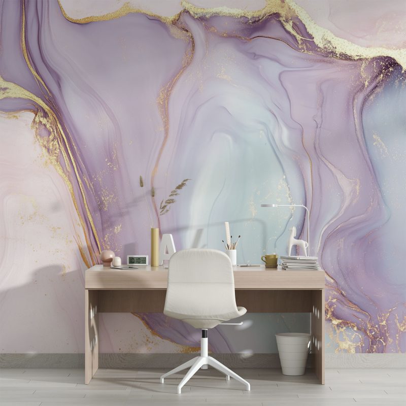 Gouden marmer ademt luxe, zwevend in een zee van roze, blauw en witte tinten. De levendige textuur danst met diepte en beweging, waardoor elke wand een kunstwerk wordt. Deze zachte kleurenpracht brengt rust en verfijning in je interieur, perfect voor een serene maar stijlvolle sfeer in elke ruimte.