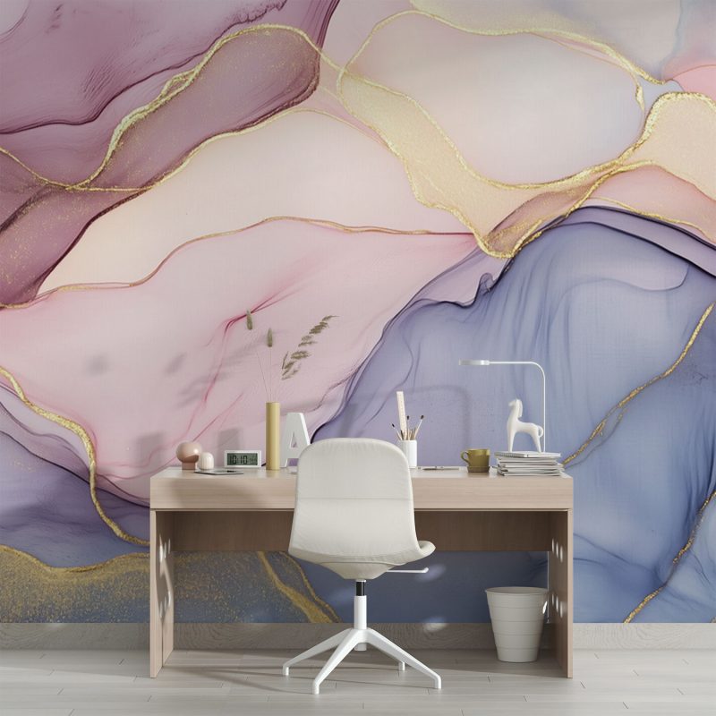 Dansende tinten roze, blauw en paars wervelen als een levendig droomlandschap. Gouden accenten flitsen erdoorheen als fonkelende lichtstrepen. Dit kleurrijke spektakel brengt magische energie in je ruimte en transformeert muren in een meeslepend kunstwerk. Perfect voor wie durft en verlangt naar een interieur vol expressie en verwondering.