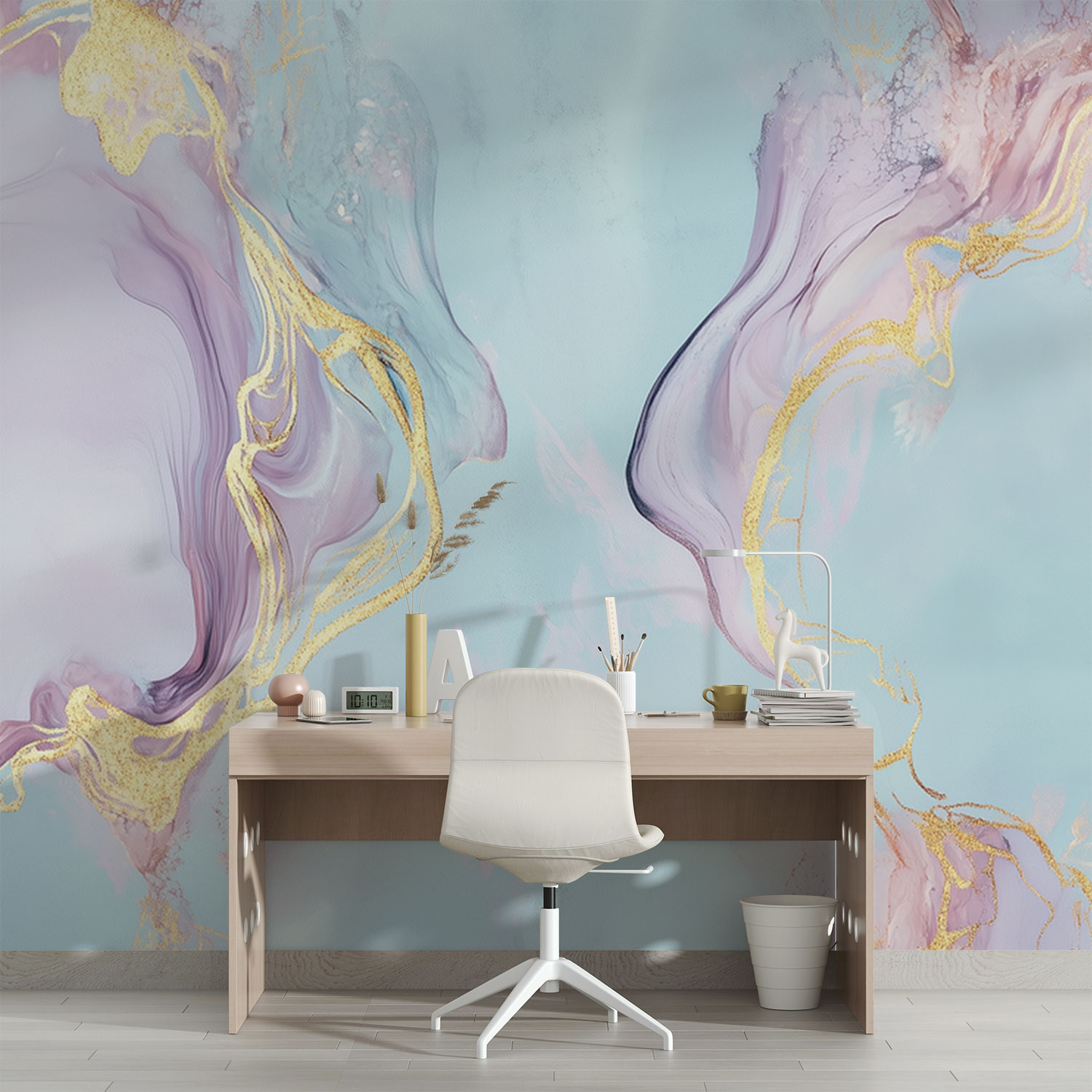 Dansende tinten roze, blauw en goud wervelen in een levendige symfonie van kleur. Deze abstracte explosie van creativiteit brengt energie en passie in elke ruimte. De overlappende vormen creëren een hypnotiserende diepte die blijft boeien. Perfect voor wie durft, dit kunstzinnige behang transformeert muren in een dynamisch meesterwerk dat interieurs verrijkt met warmte en beweging.