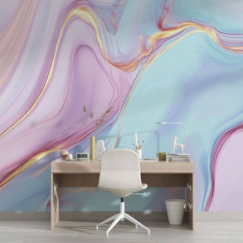 Dansende tinten roze, blauw en goud vloeien in een levendige marmeren symfonie. Deze abstracte werveling brengt pure energie in je ruimte, waar kleuren speels door elkaar dansen. Het stralende ontwerp ademt vreugde en beweging, perfect om een modern interieur tot leven te wekken met zijn positieve uitstraling en dynamische karakter.