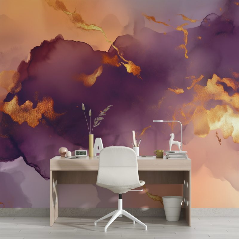 Purper en goud dansen in een weelderige abstractie van vormen en texturen. Deze levendige compositie straalt pure elegantie uit en brengt een gevoel van luxe in elke ruimte. Zijn dynamische uitstraling trekt onmiddellijk de aandacht en voegt diepte en karakter toe aan moderne interieurs.