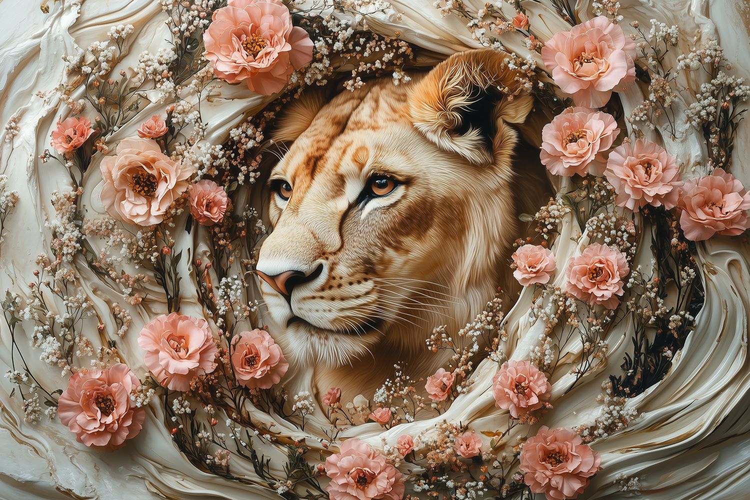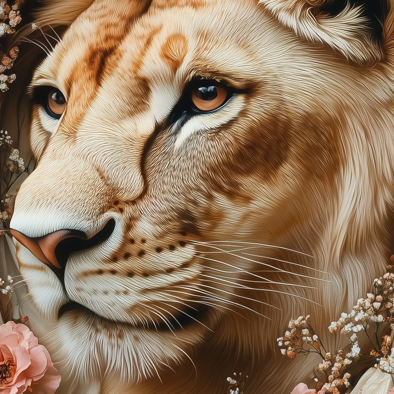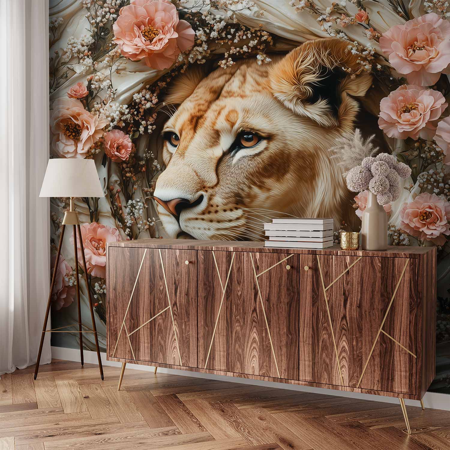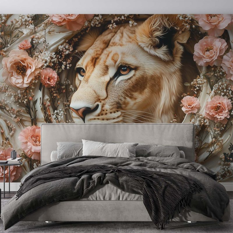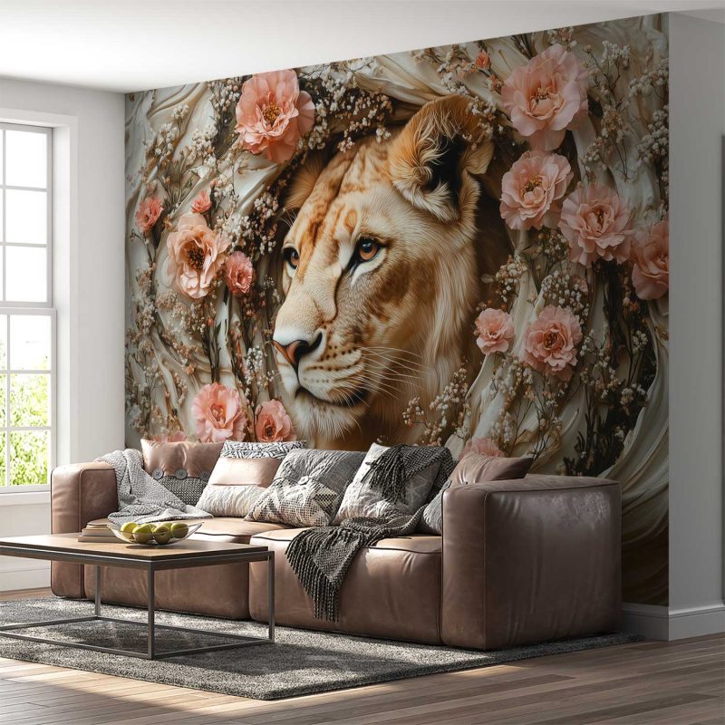 Lion omringd door bloemen behang