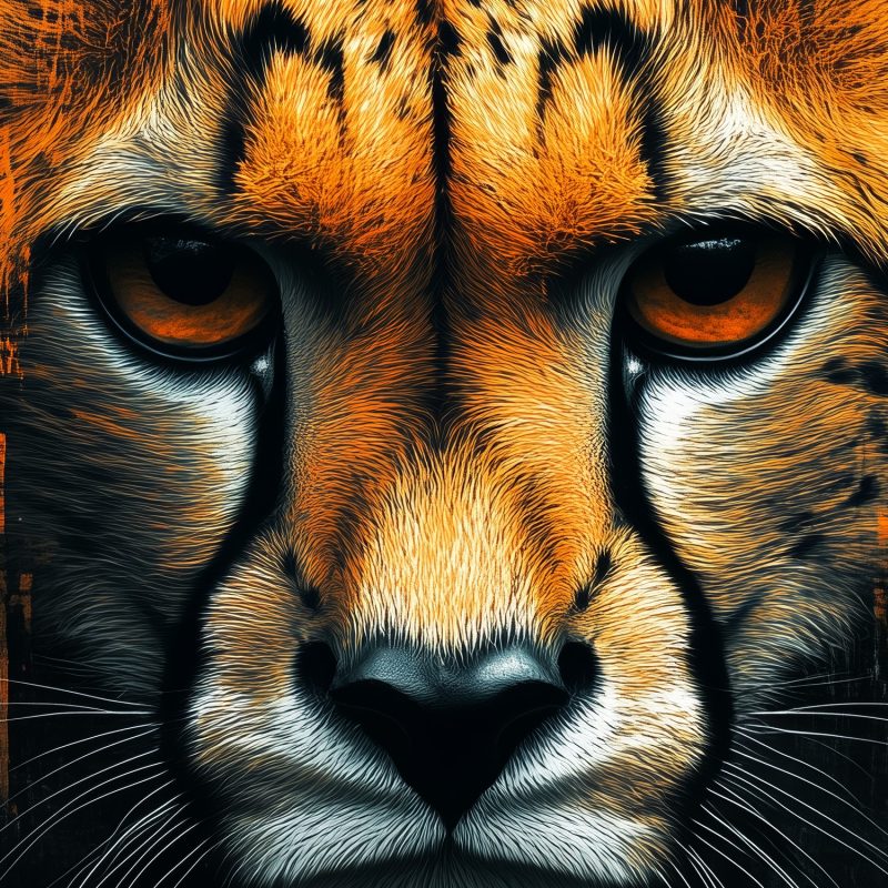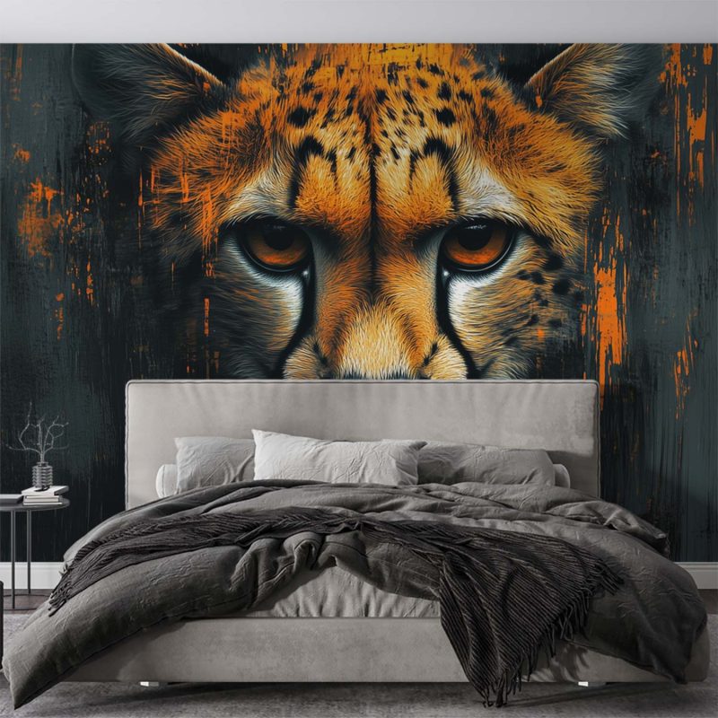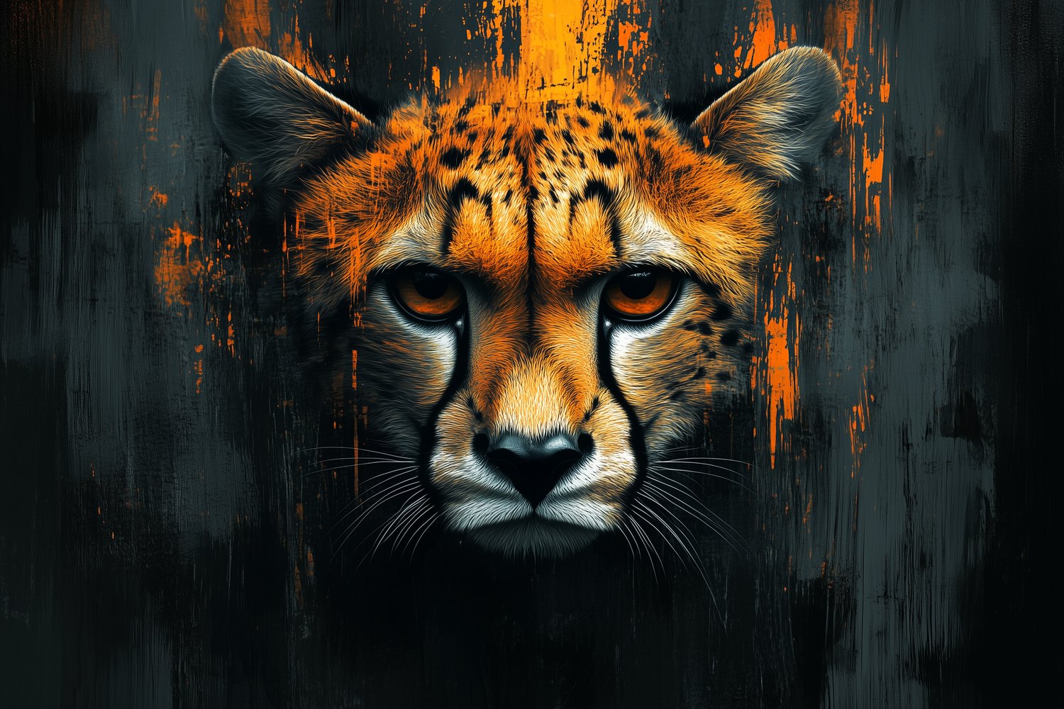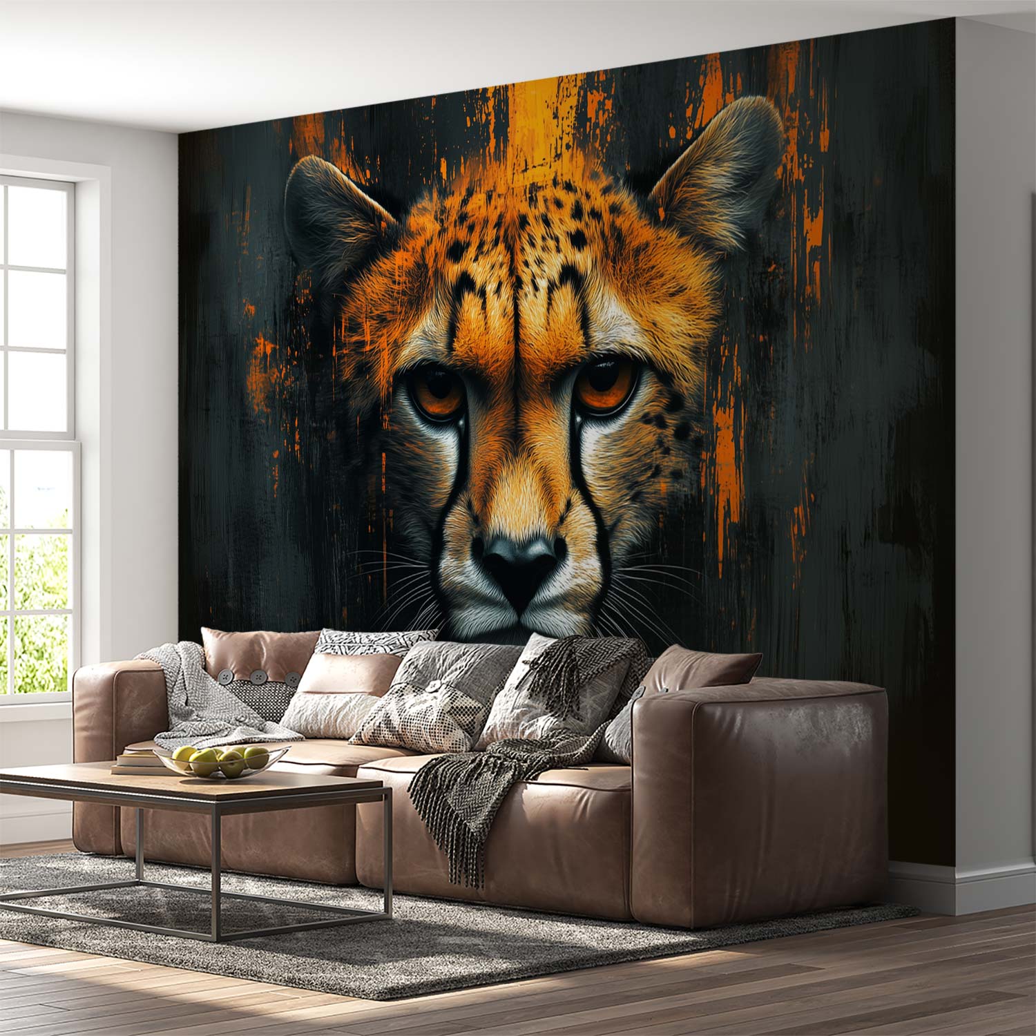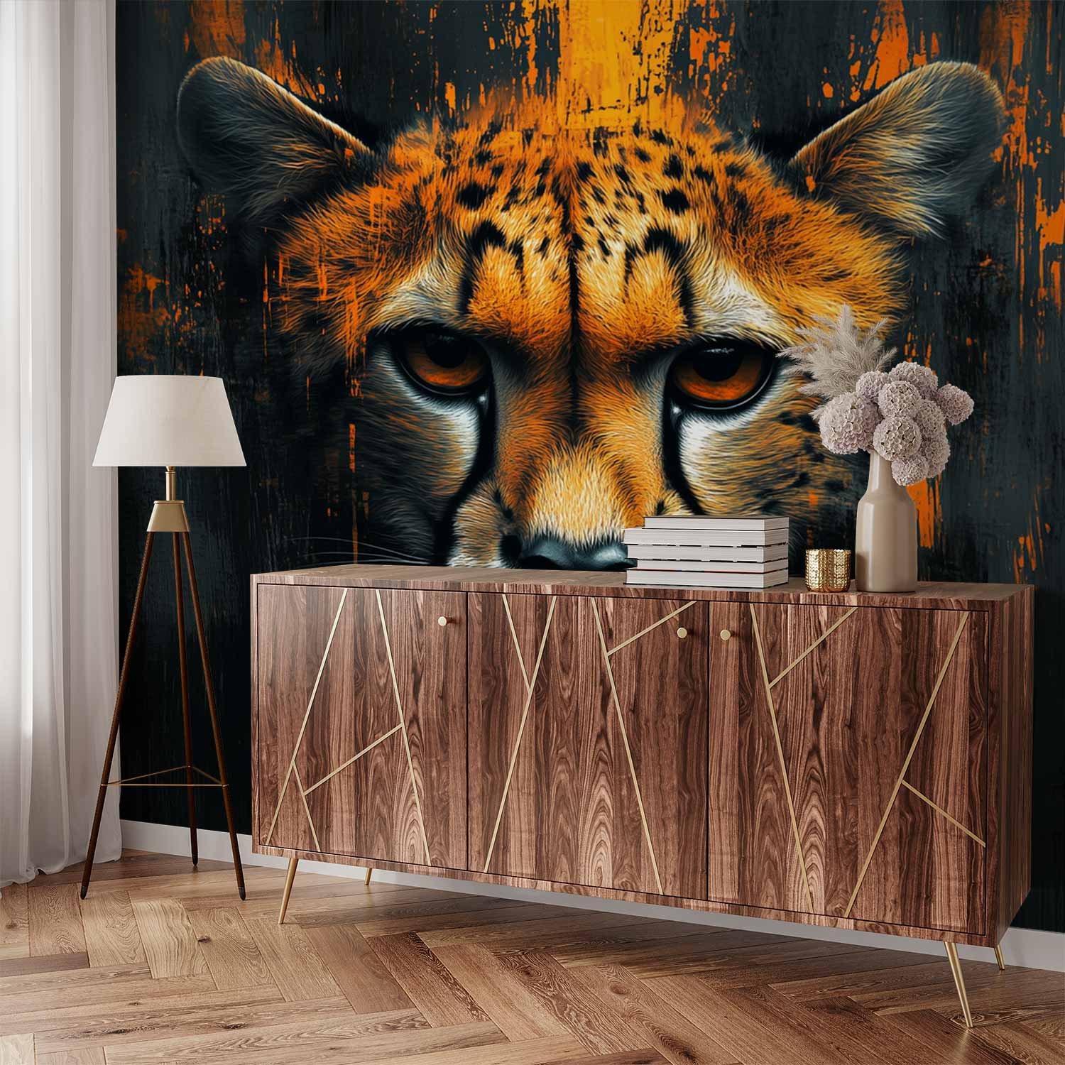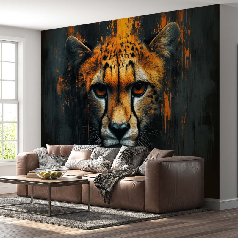 In een diepe duisternis doemt de cheetah op, zijn goudzwarte vurigheid vult de ruimte. Alert en kalm, zijn blik grijpt je met onmiskenbare kracht. Deze levendige aanwezigheid brengt wild elegantie en dynamische energie in je interieur, een statement van pure majesteit die elke muur transformeert tot een focal point vol karakter en diepte.