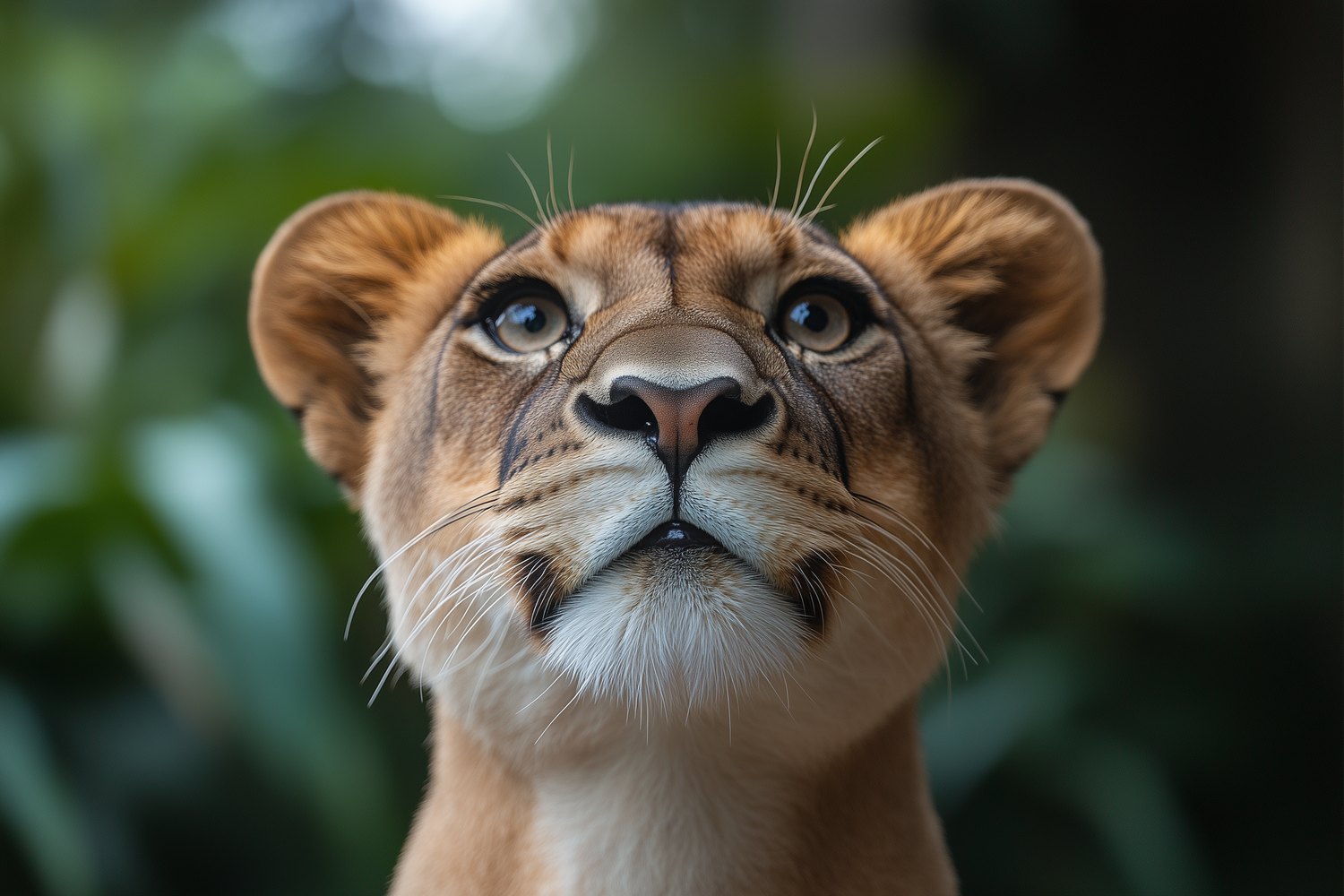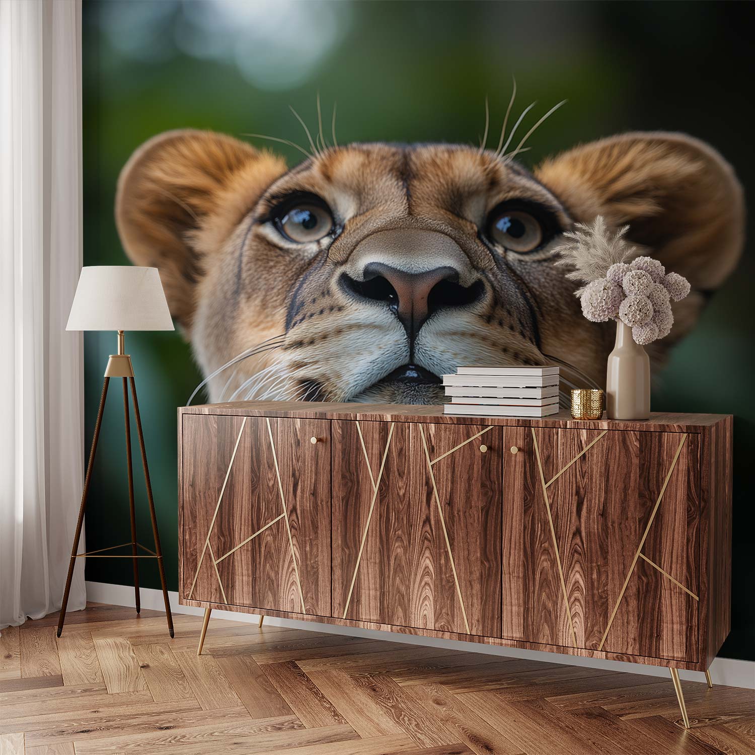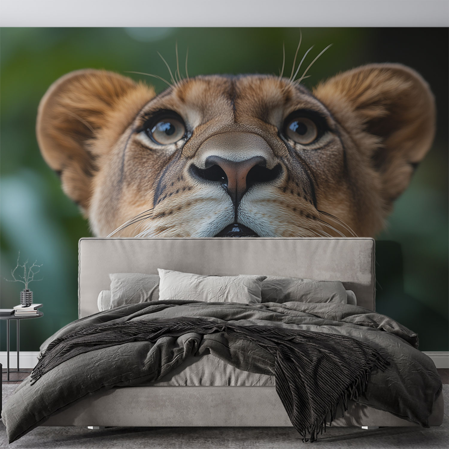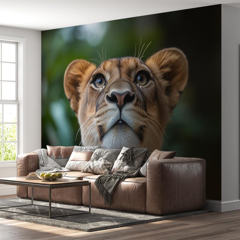 Majestueuze bruintinten vangen een leeuwin in volle glorie. Haar doordringende blik treft je rechtstreeks, vol kracht en trots. De wazige achtergrond laat haar imposante aanwezigheid volledig spreken. Dit behang brengt wildernis en elegantie samen, creëert een statement vol karakter voor elke ruimte die durf en natuurlijke schoonheid omarmt.