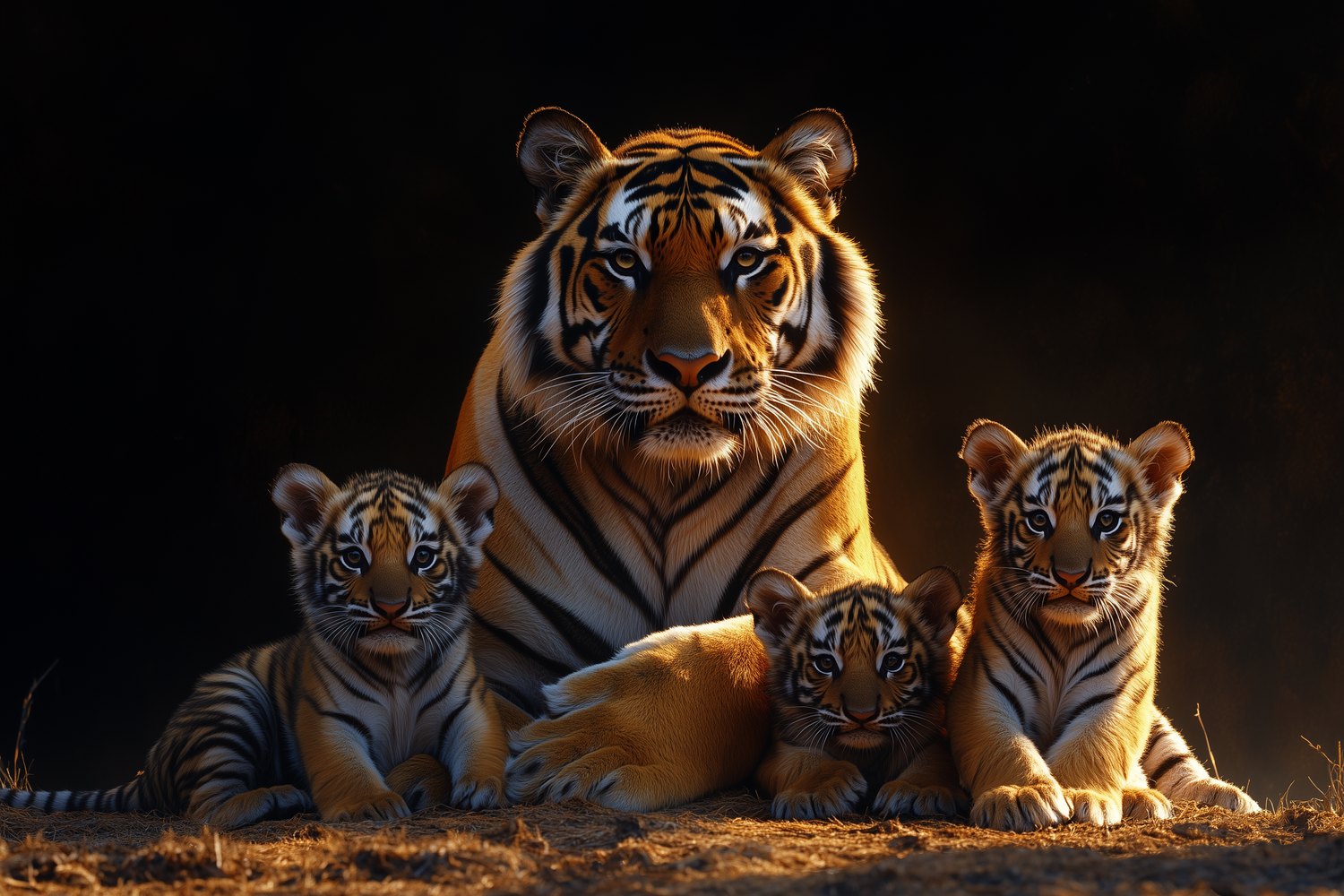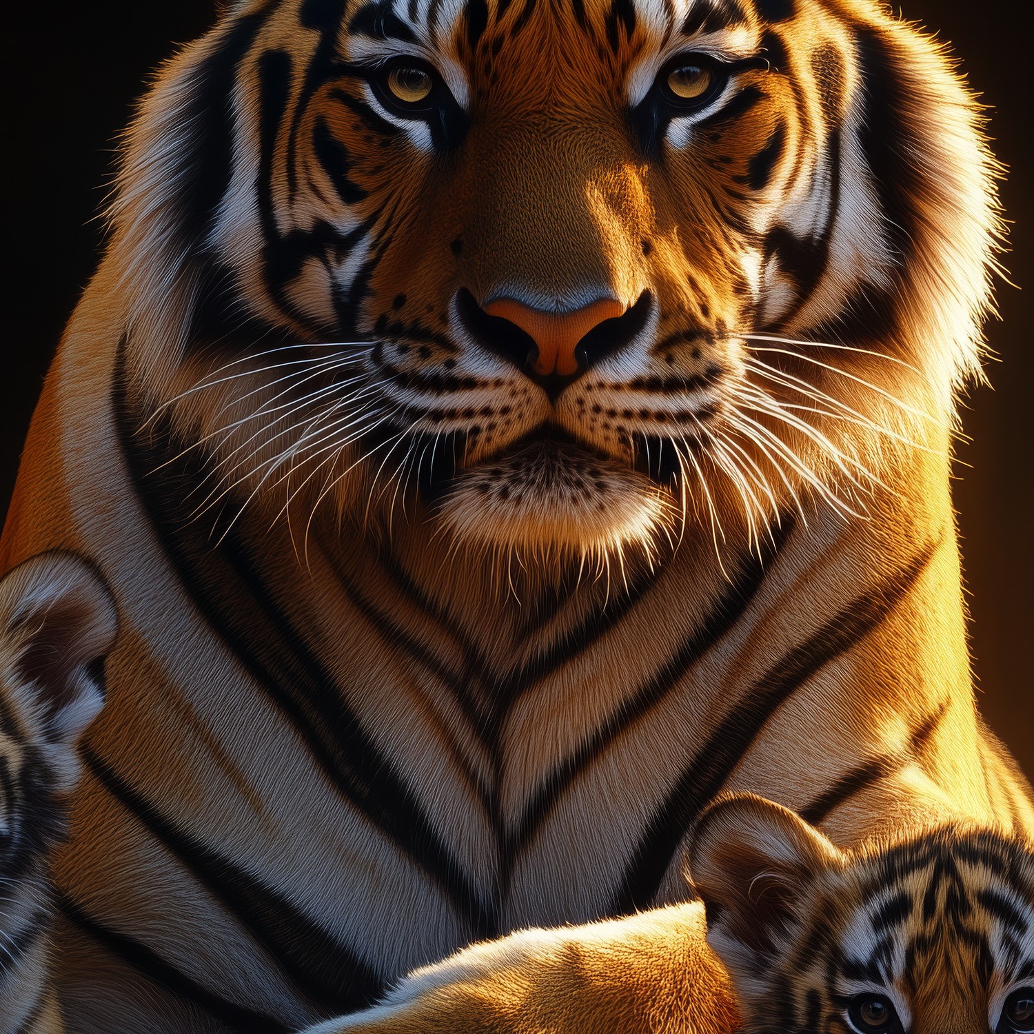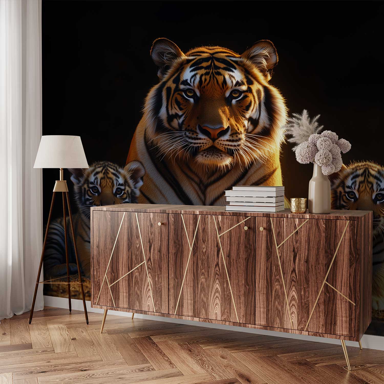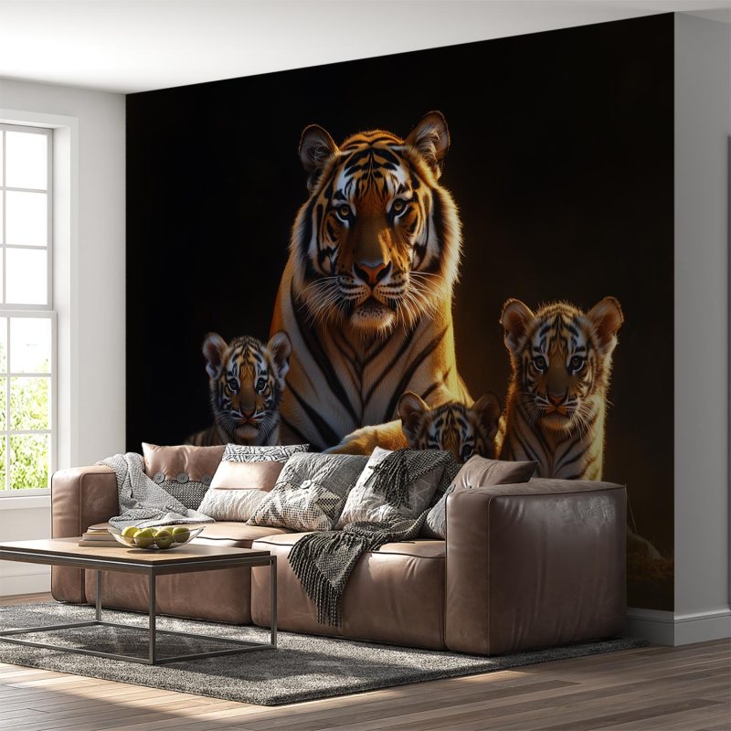 Moeder tijger beschermt welpen behang