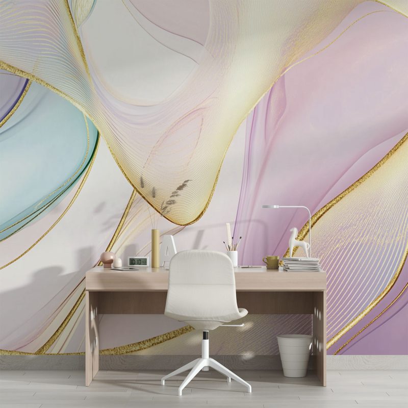 Dansende pastel tinten van roze, blauw en wit wervelen speels over het vlak, verrijkt met gouden accenten die elegantie uitstralen. Deze levendige abstractie brengt dynamische energie in elke ruimte, terwijl de zachte kleurenpalet een kalmerende sfeer creëert. Perfect voor wie verfijnde vreugde en artistieke flow aan het interieur wil toevoegen zonder overweldigend te zijn.
