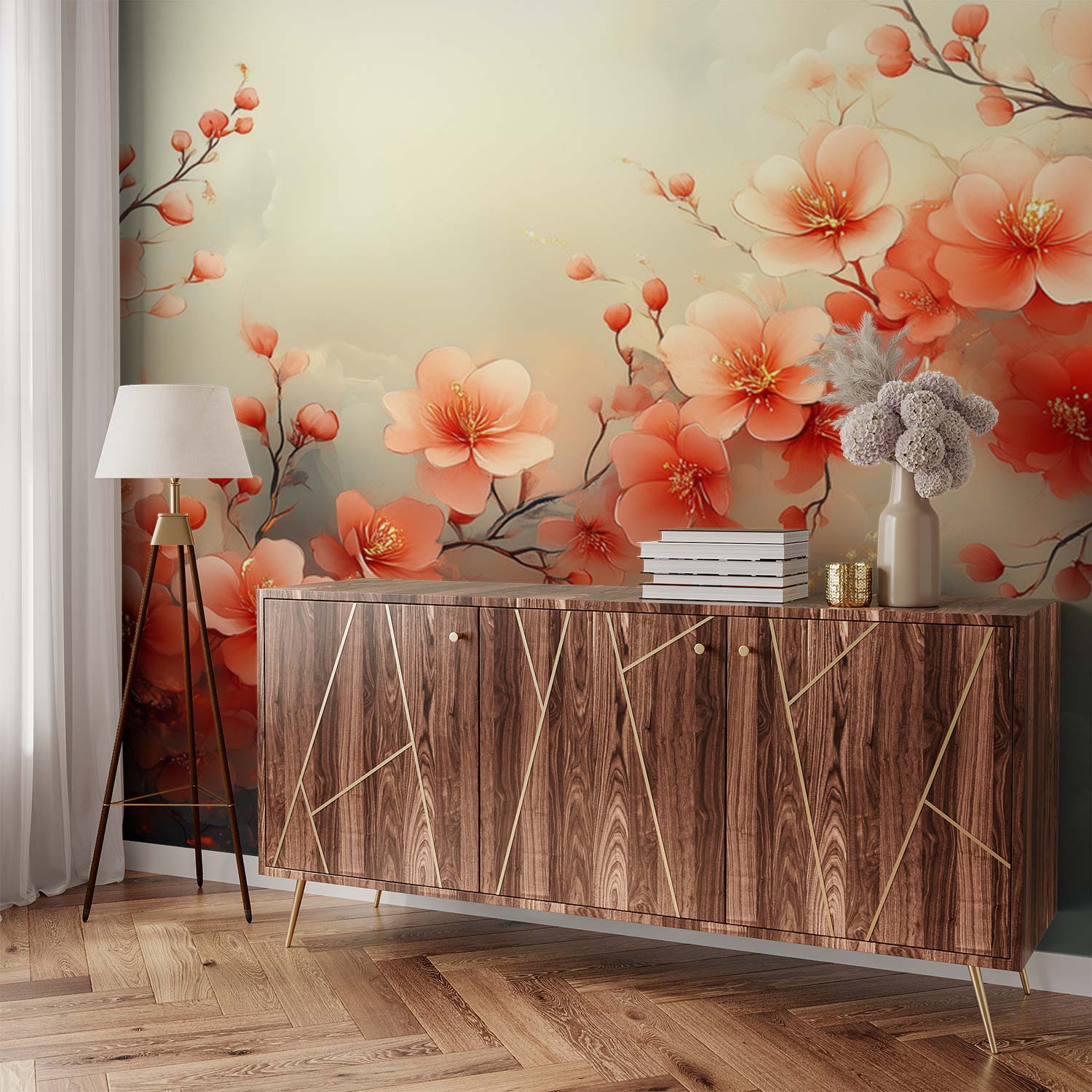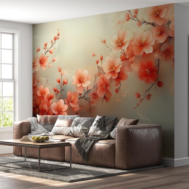 Betoverend roze en oranje bloemen dansen over dit behang, van dichtbij tot ver weg. Levendige tinten creëren een warme, vrolijke sfeer die elke ruimte transformeert. De harmonieuze compositie brengt de natuur naar binnen en wekt een gevoel van sereniteit op. Perfect voor wie verfijning zoekt met een speelse twist, dit ontwerp voegt diepte en energie toe aan moderne woonruimtes.