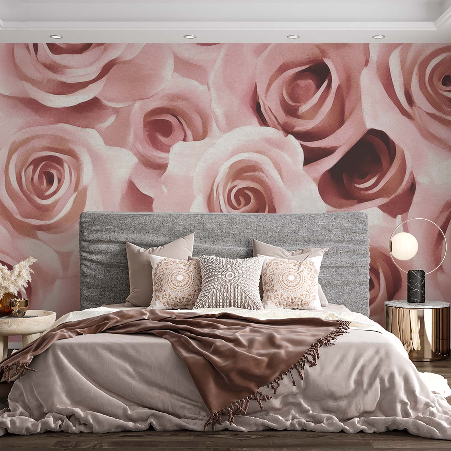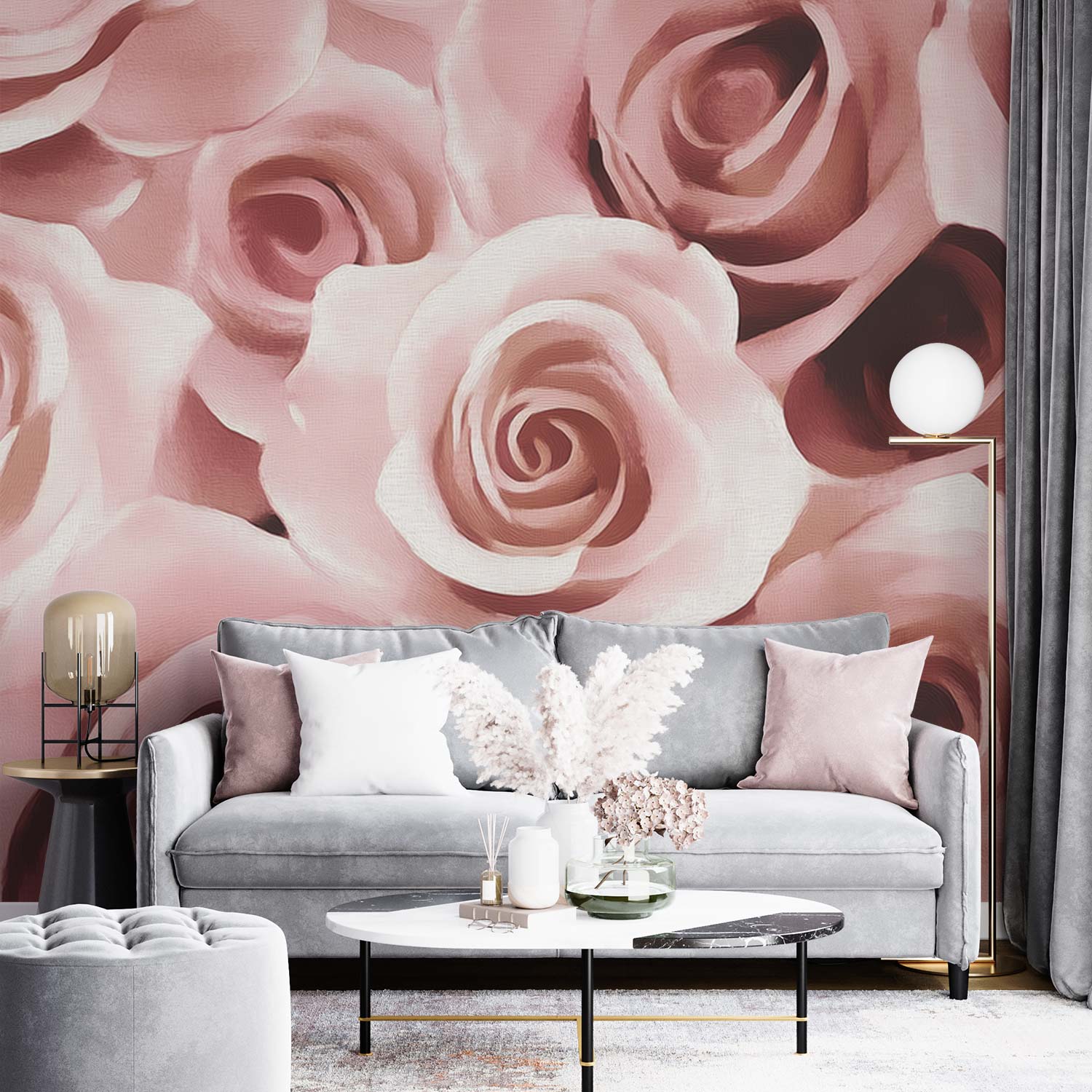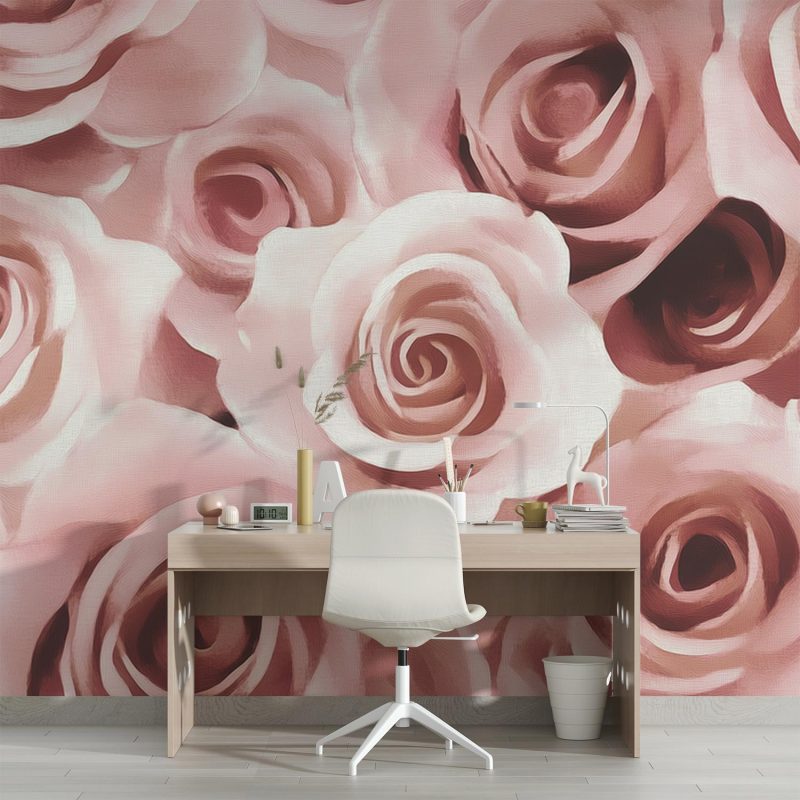 Zachte roze rozen dansen over het behang, omarmd door subtiele witte accenten. Deze bloemenzee ademt pure romantiek en brengt een serene sfeer in elke ruimte. De harmonieuze compositie straalt elegantie uit en transformeert je muur in een tijdloos bloemenstuk. Perfect voor een slaapkamer of woonkamer waar rust en natuurlijke schoonheid centraal staan.