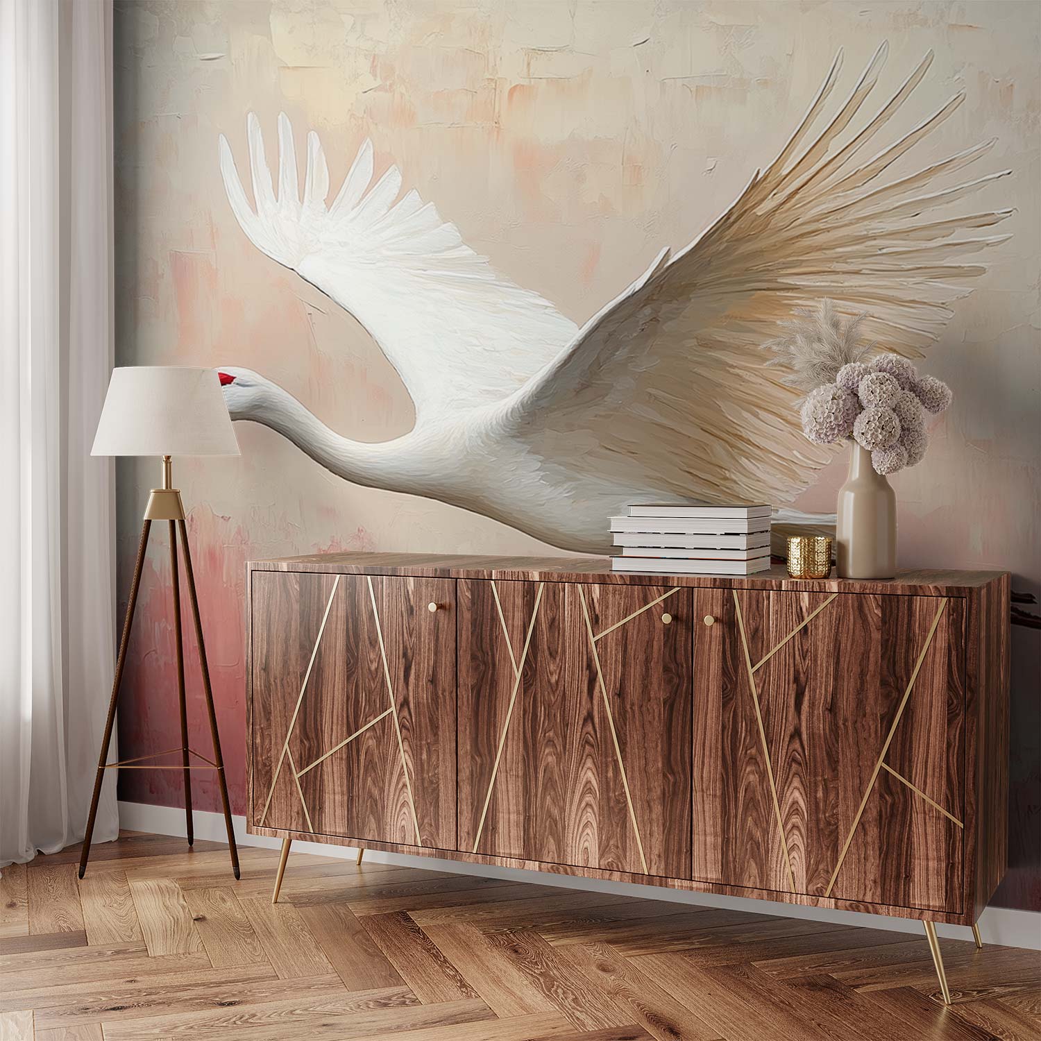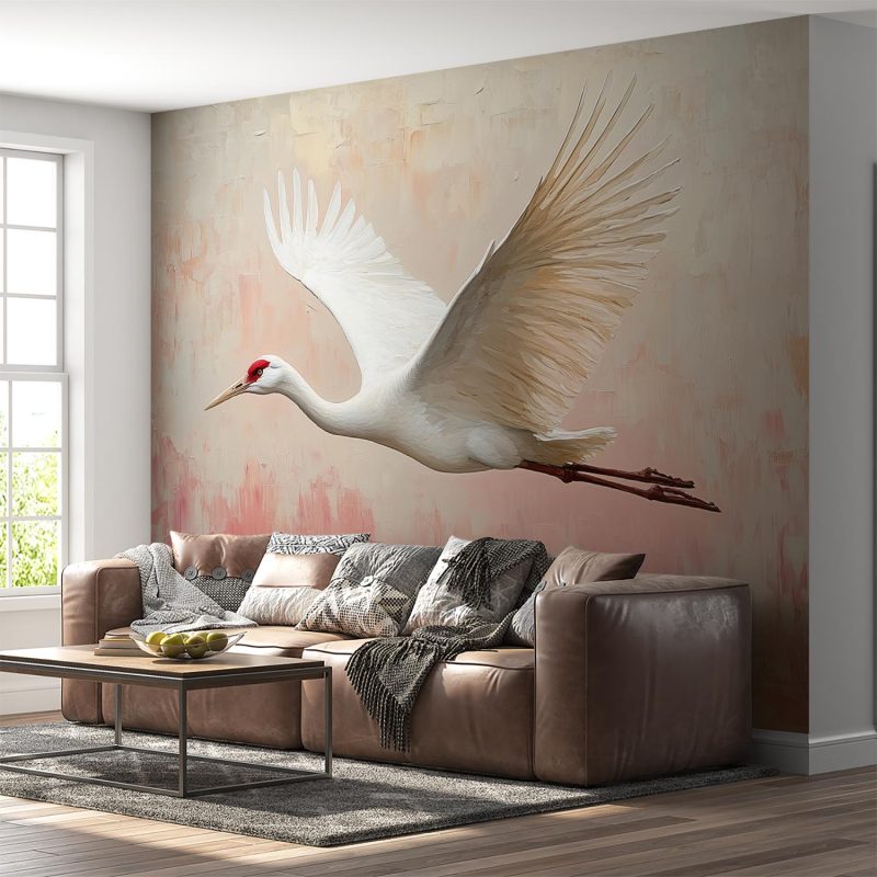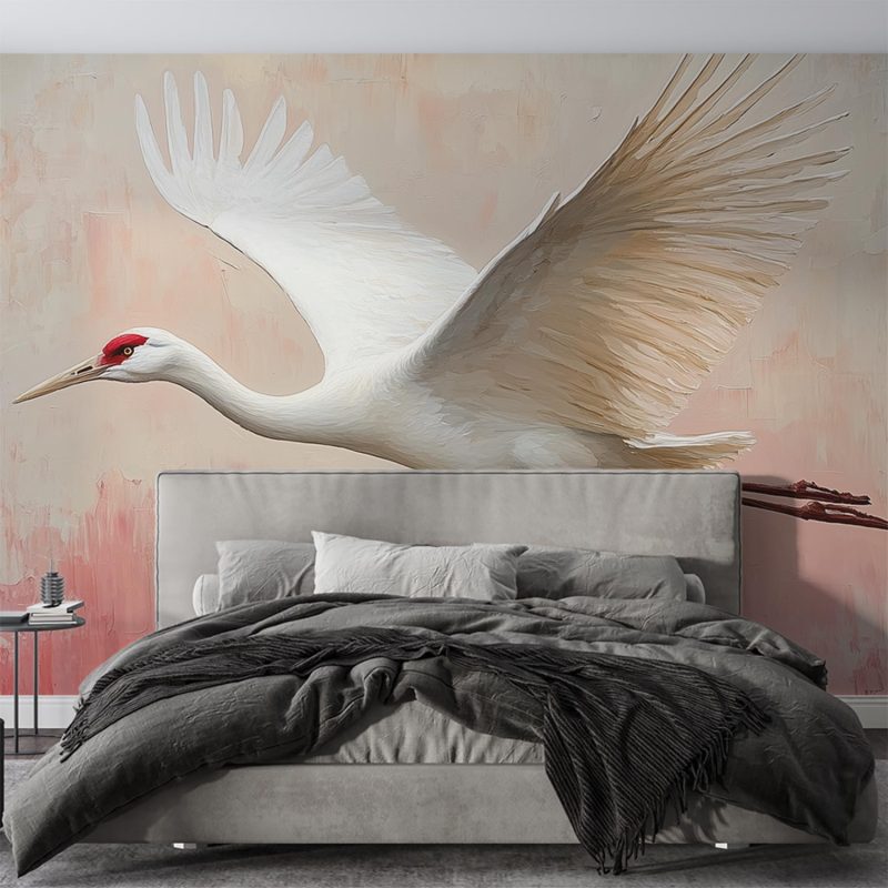 Rode Kroonkraanvogel in Vlucht behang