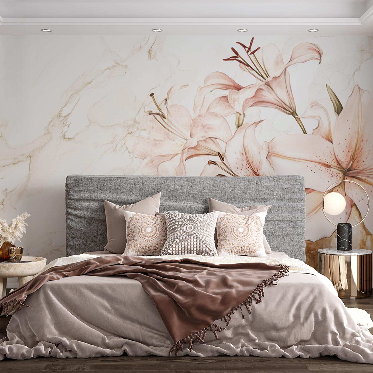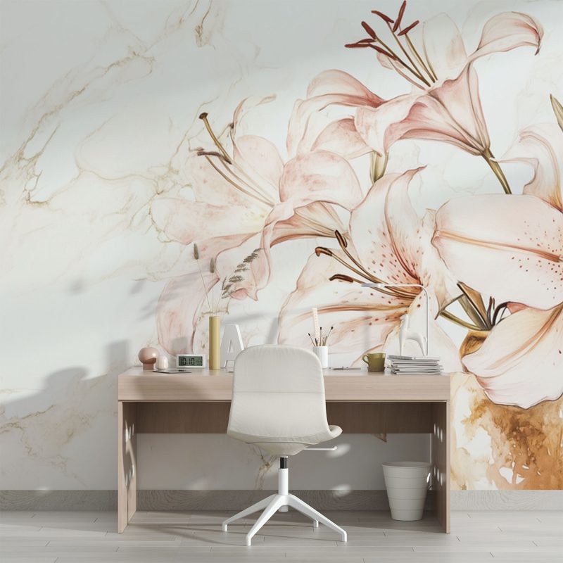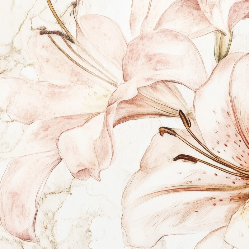 Roze lelies stromen overvloedig uit de vaas, dansend in een zachte uitnodigende sfeer. Het marmeren oppervlak versterkt de elegantie met tijdloze verfijning. Deze levendige bloemenweelde brengt rust en natuurlijke schoonheid in je ruimte, waardoor elke muur een serene blikvanger wordt vol warmte en harmonie. Perfect voor een interieur dat verlangt naar frisse, organische stijl met een vleugje verfijning.
