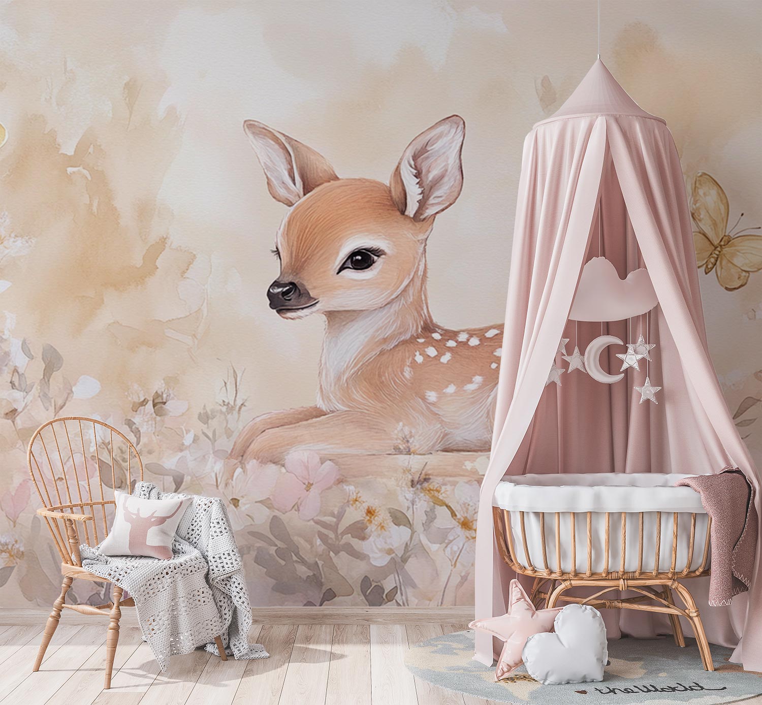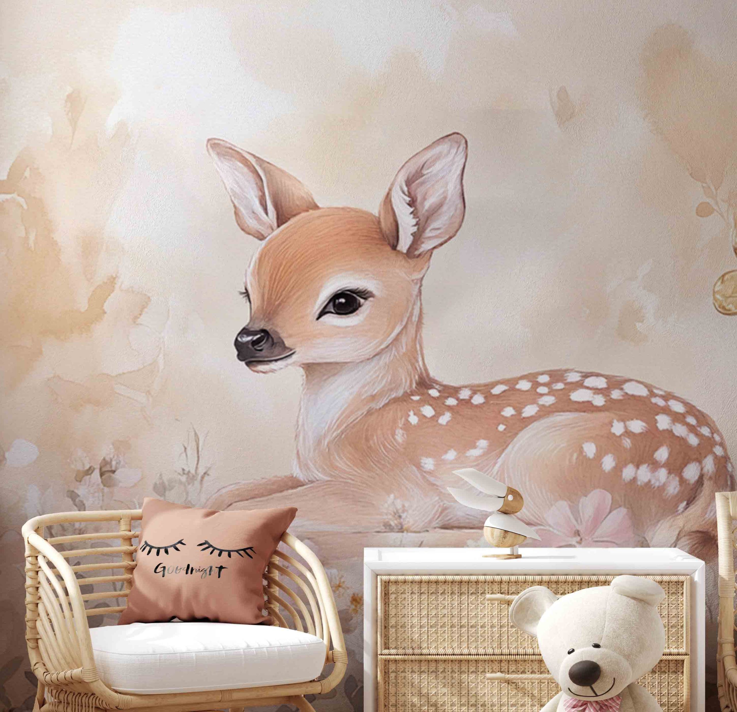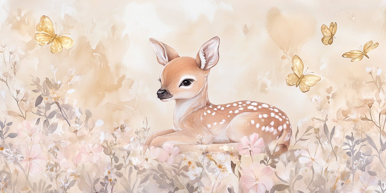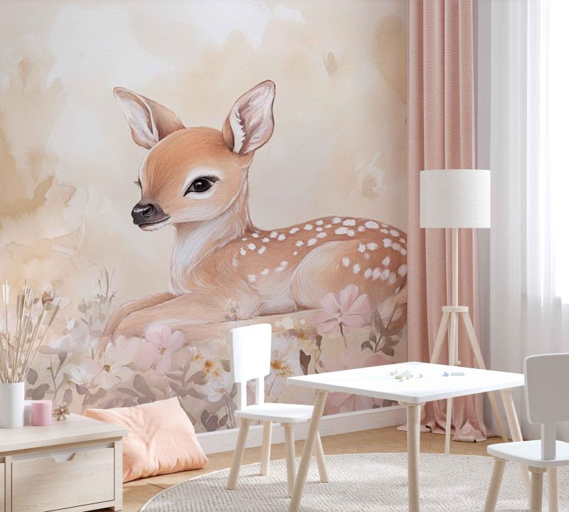 Schattig hertje in bloemenveld behang