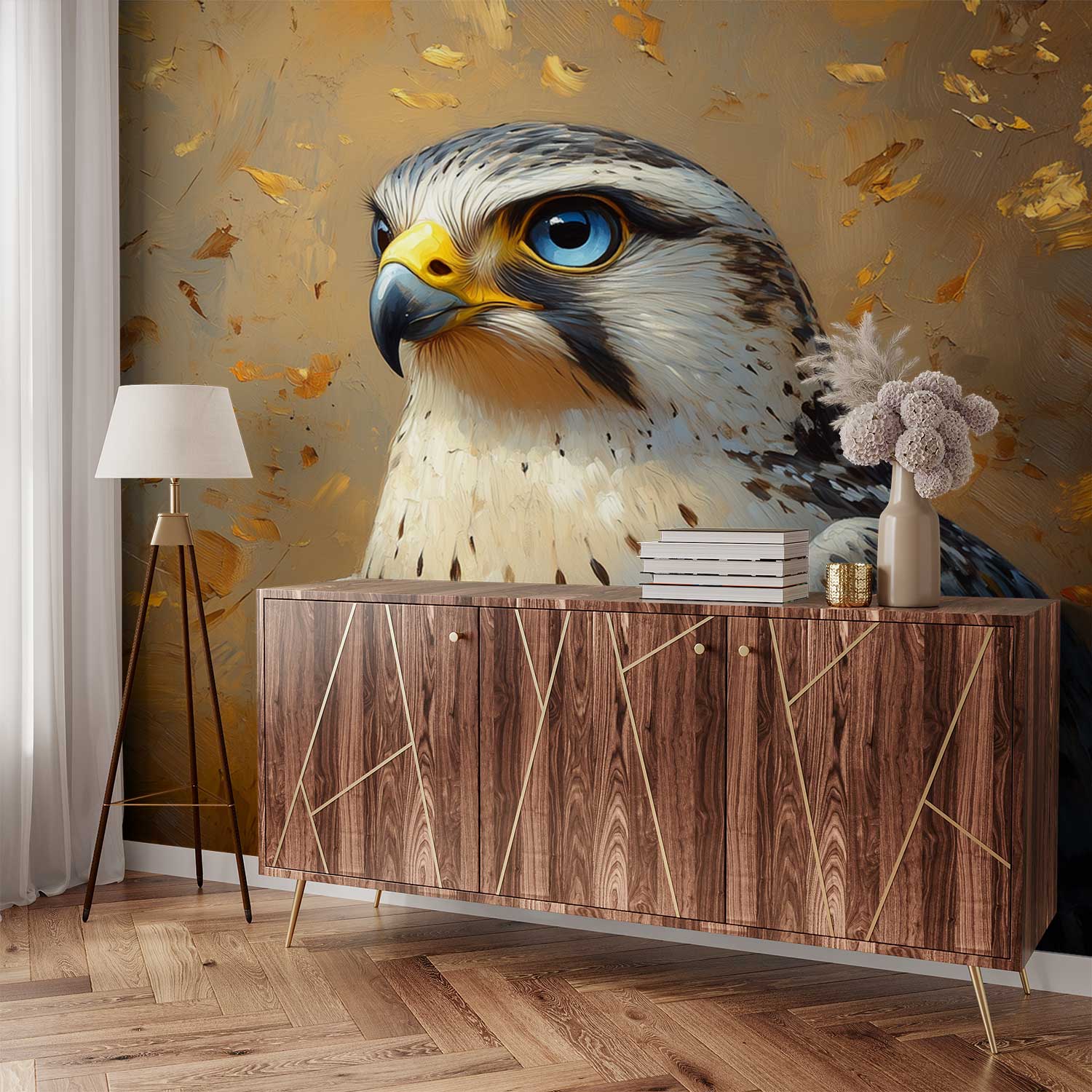 Gouden tinten omhullen deze majestueuze roofvogel, wiens doordringende blauwe ogen de ruimte doorkruisen. Zijn verenkleed in scherp zwart-wit contrasteert krachtig met de warme achtergrond, alsof hij elk moment kan opstijgen. Deze levendige verschijning brengt dynamiek en natuurlijke elegantie in je interieur, perfect voor wie houdt van een statement met diepte en karakter.