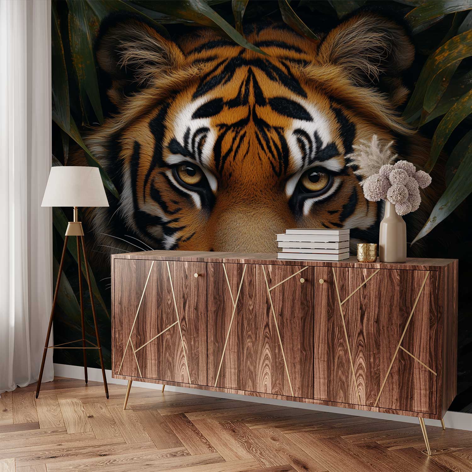 Tijger in groen mysterie behang