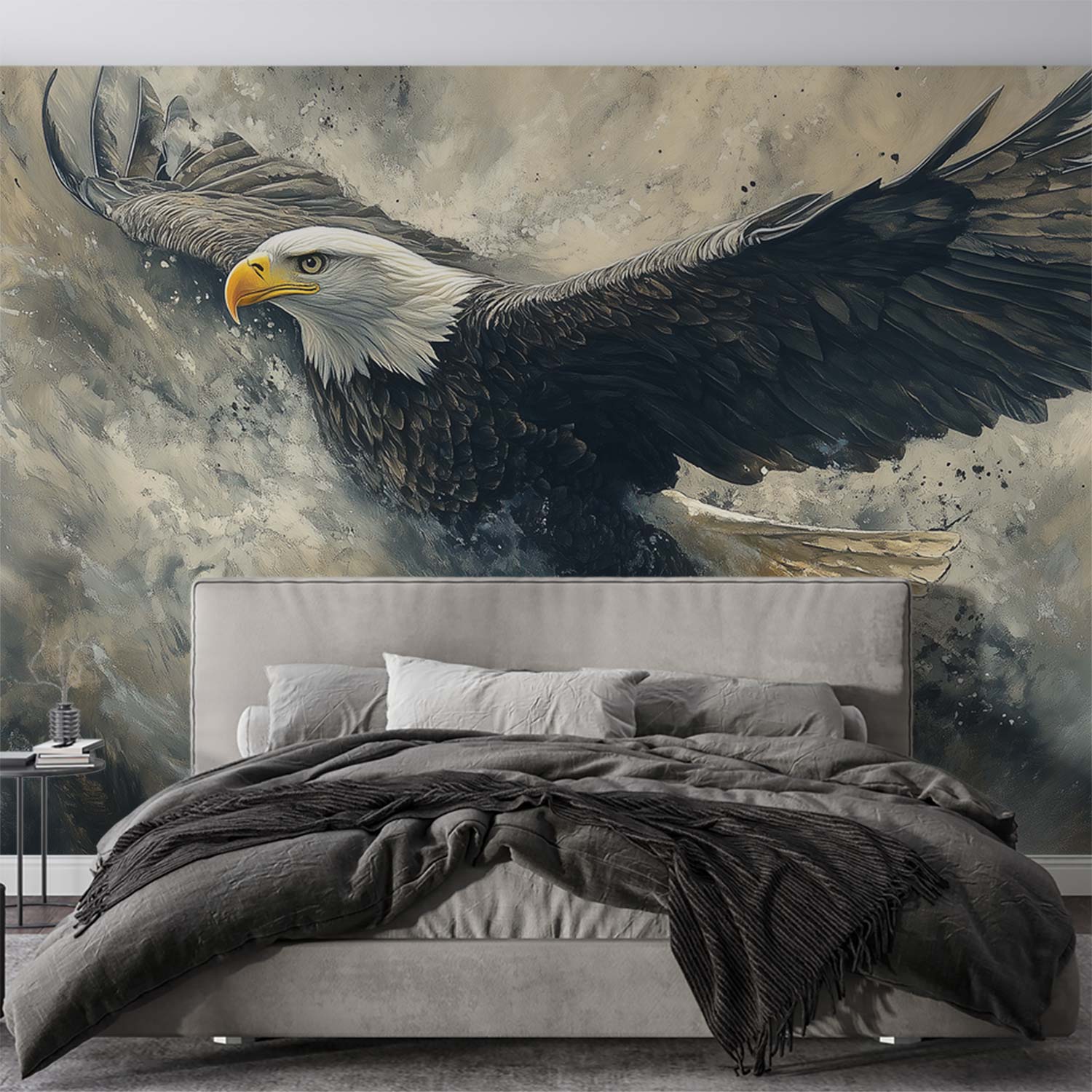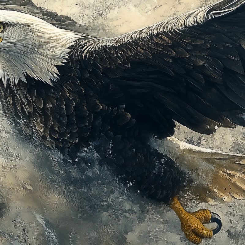Vlieg mee met deze majestueuze zeearend in volle vlucht. Zijn krachtige vleugels spreiden zich uit tegen een landschap van aardse tinten, vol dynamische energie. Dit adembenemende tafereel brengt een gevoel van vrijheid en beweging in je ruimte. De natuurlijke kleuren en gebalanceerde compositie creëren een focal point vol karakter, perfect voor een interieur dat verlangt naar drama en natuurlijke elegantie.