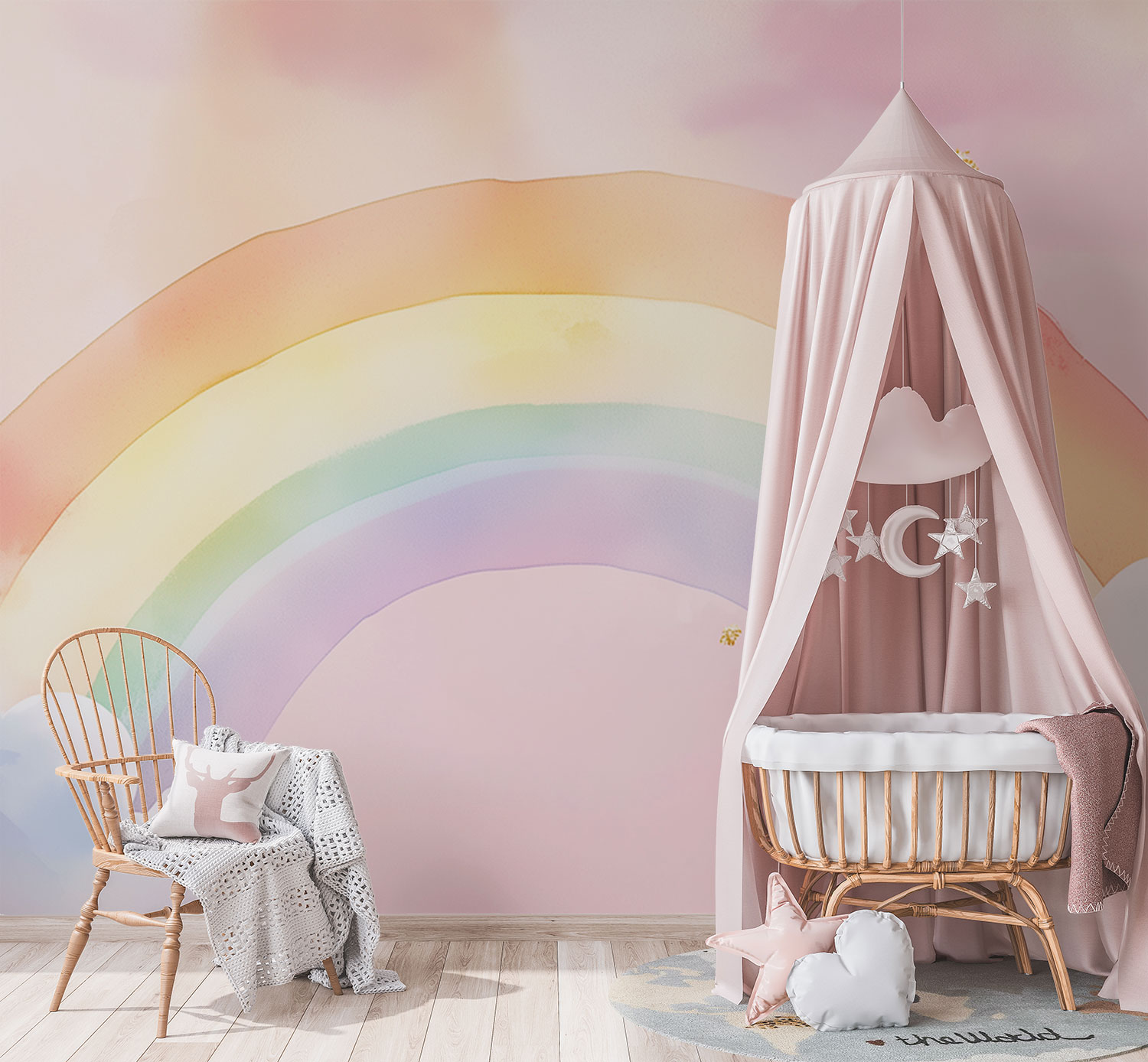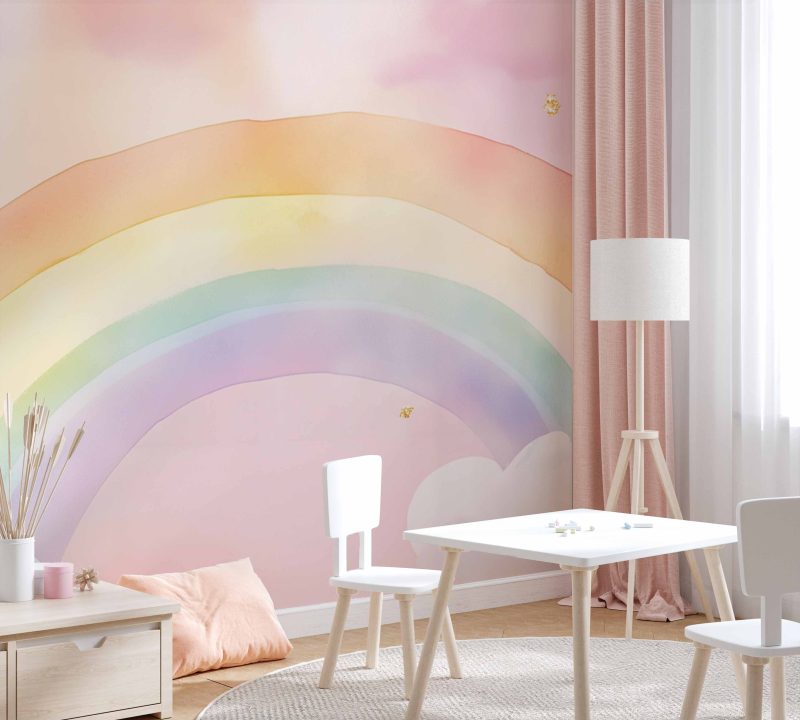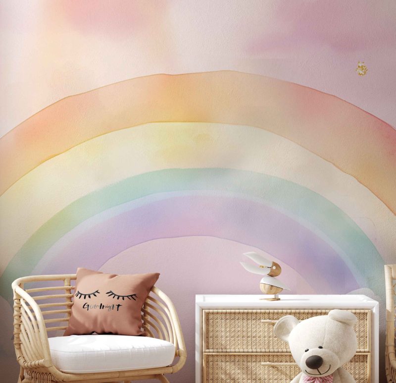 Vrolijke regenboog lucht behang