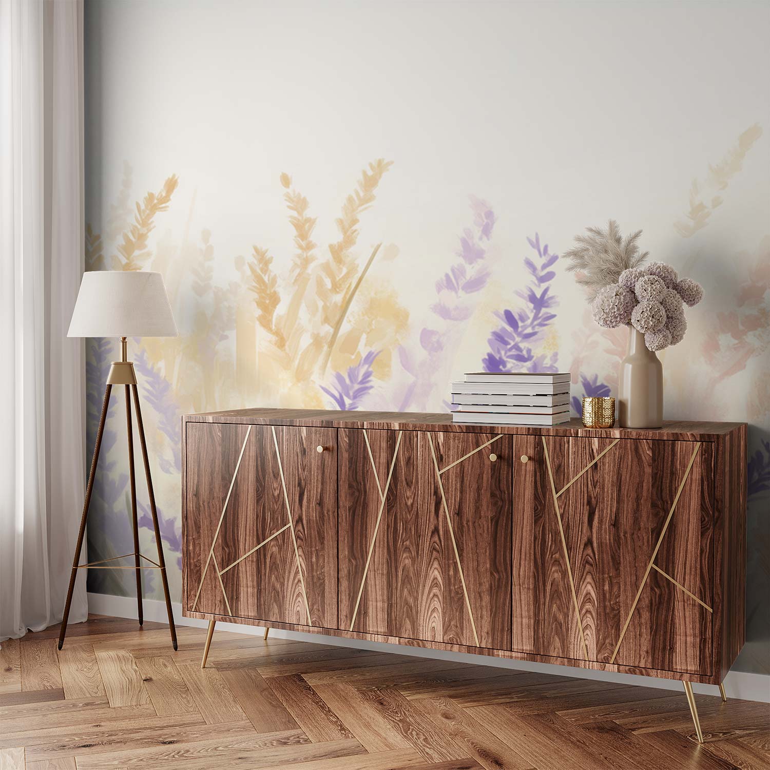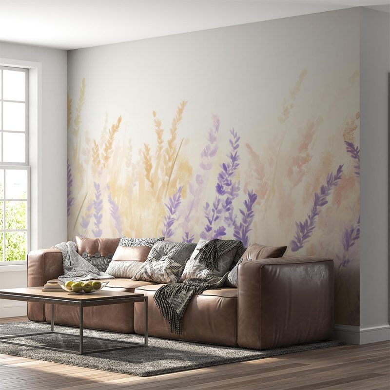 Zachte lavendelvelden dansen in waterverfschakeringen van lila tot dieppaars. Een bleekgele achtergrond versterkt de dromerige sfeer en creëert diepte. Deze rustgevende bloemenzee brengt Provençaalse sereniteit in je ruimte. De subtiele penseelstreken en harmonieuze compositie geven elk interieur een kalmerende, tijdloze uitstraling die zowel verfrist als ontspant.