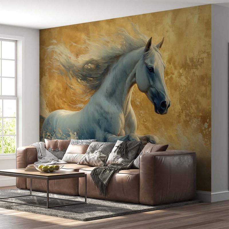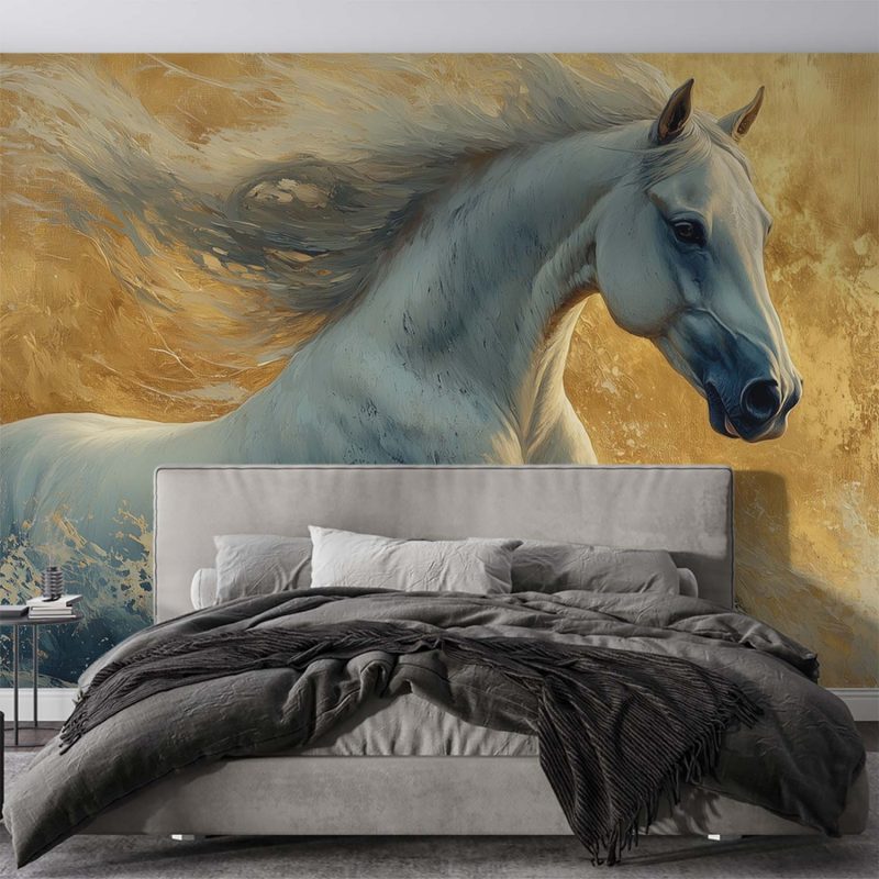 Witte Galopperende Paard behang
