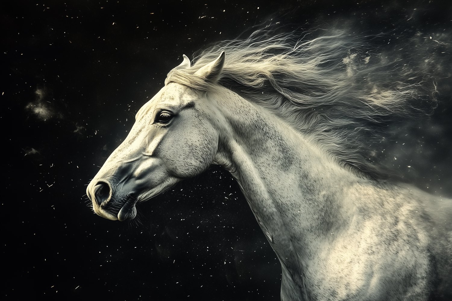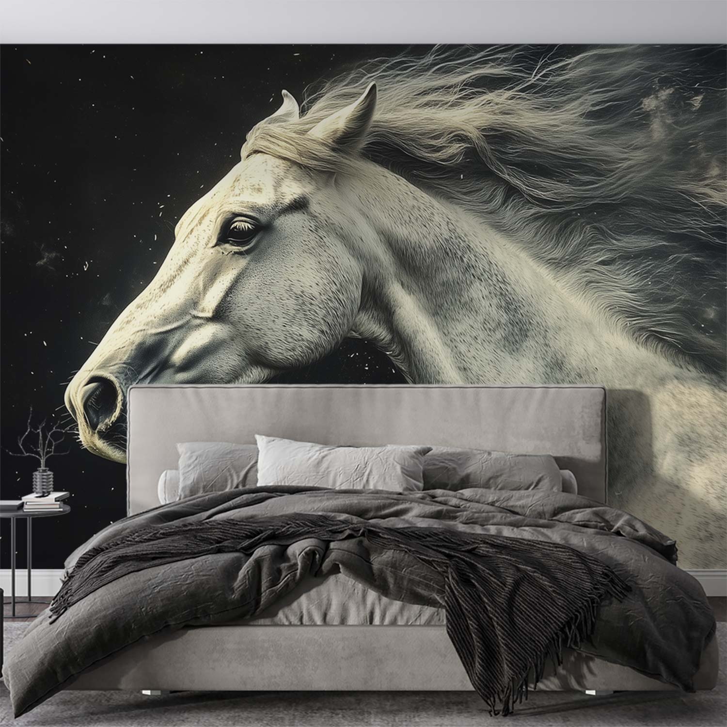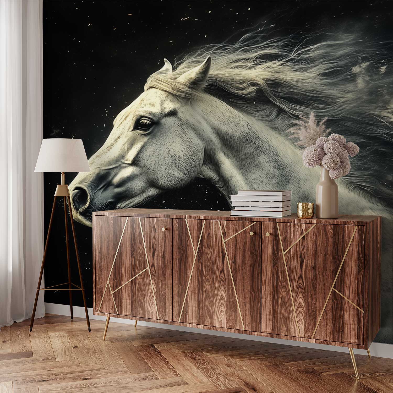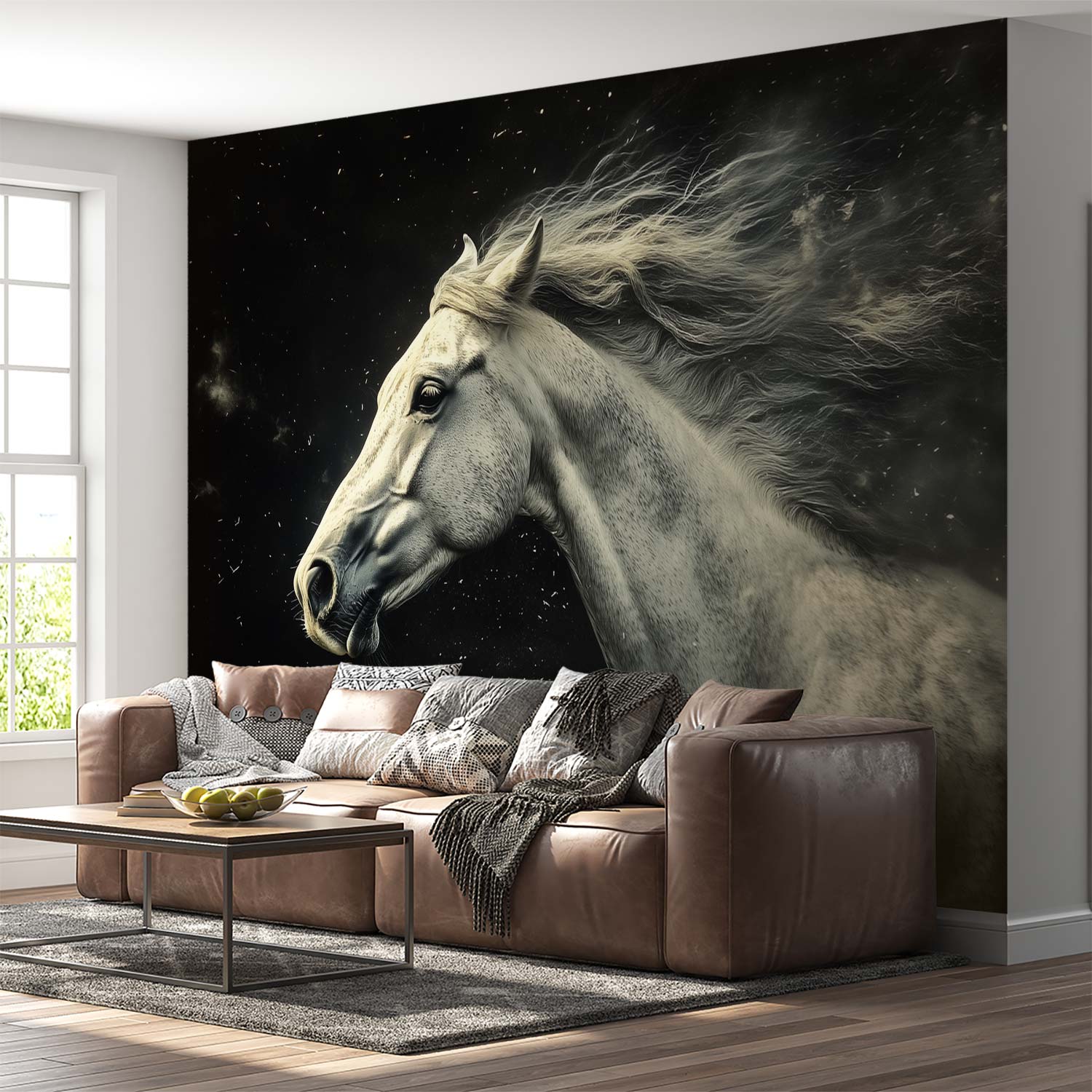 Witte galopperende paardenkracht behang