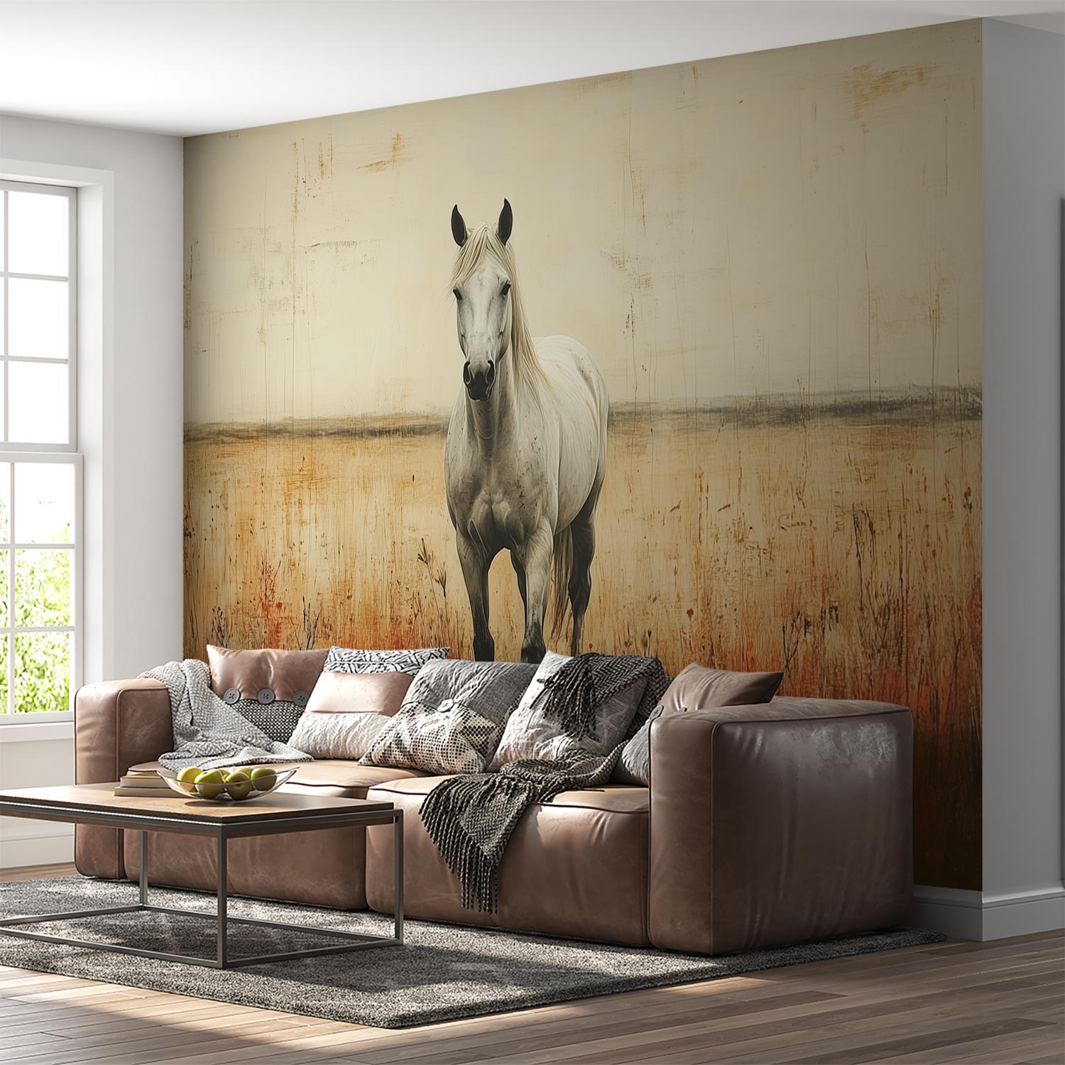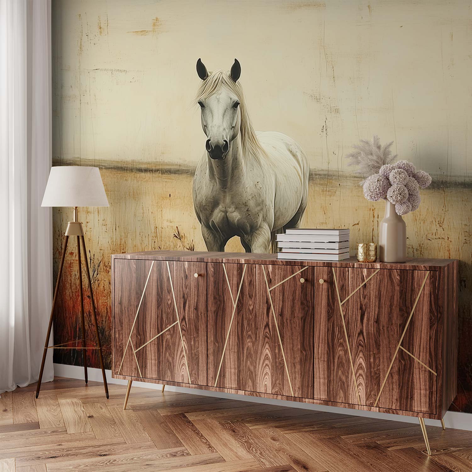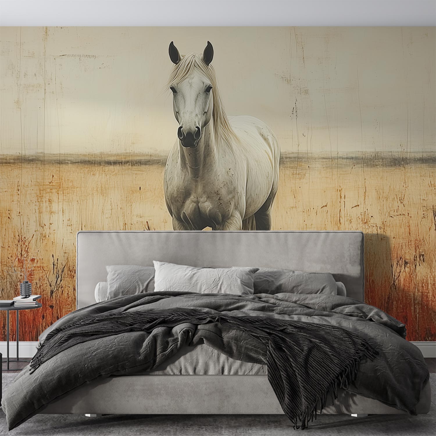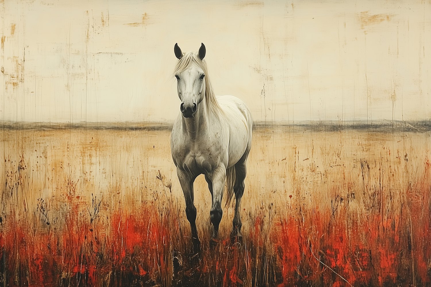 Verfijnde rust daalt neer in witte en aardetinten. Een majestueus paal staat kalm temidden van goudbruine grassen die zachtjes dansen in de bries. Deze serene scène brengt harmonie en natuurlijke elegantie in uw ruimte, waardoor een oase van kalmte ontstaat die zowel verfijnd als tijdloos aanvoelt. Perfect voor wie verlangt naar een vredige ontsnapping binnen de eigen muren.
