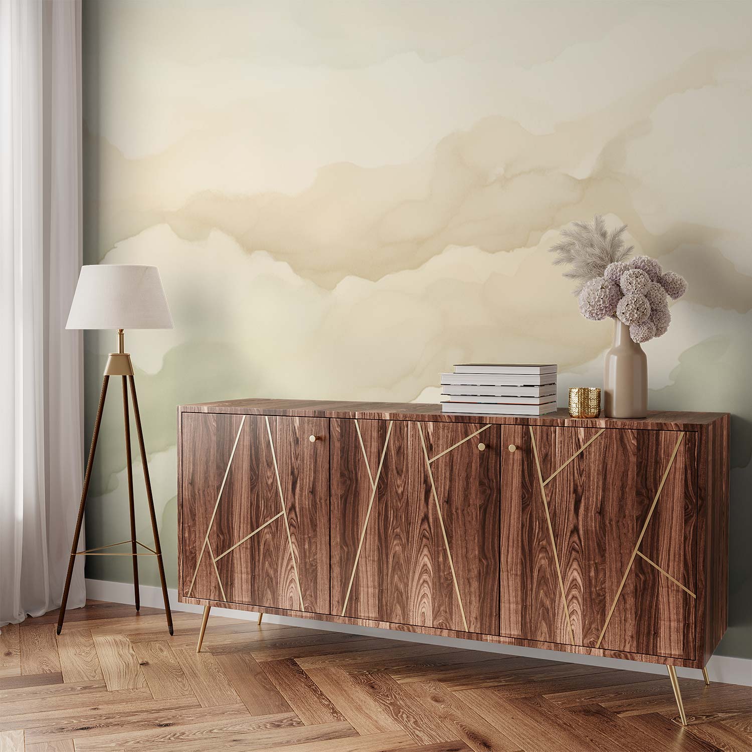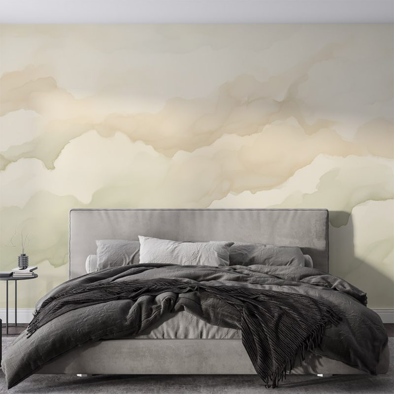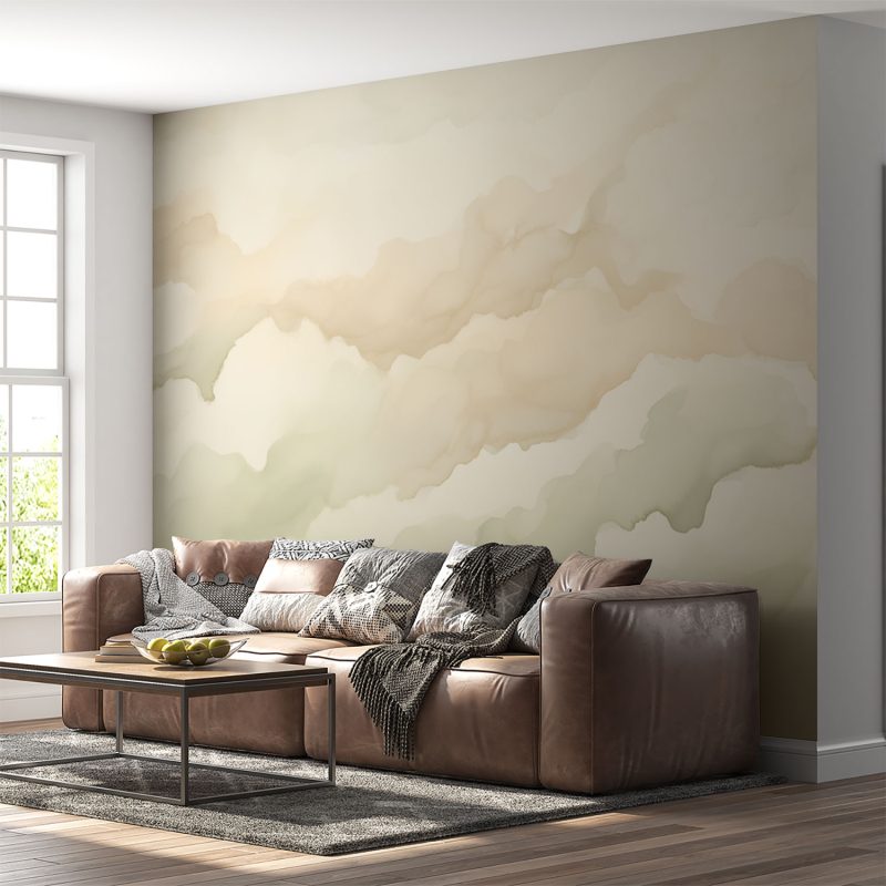 Zachte groene en beige tinten dansen zachtjes over het doek, als een zomerse bries die door een rustige tuin waait. Dit behang brengt de serene schoonheid van de natuur binnen, met zijn vloeiende waterverfstreken die een gevoel van harmonie en rust creëren. Perfect voor het transformeren van elke ruimte in een kalme oase, waar kleuren zachtjes in elkaar overlopen en een tijdloze elegantie toevoegen.