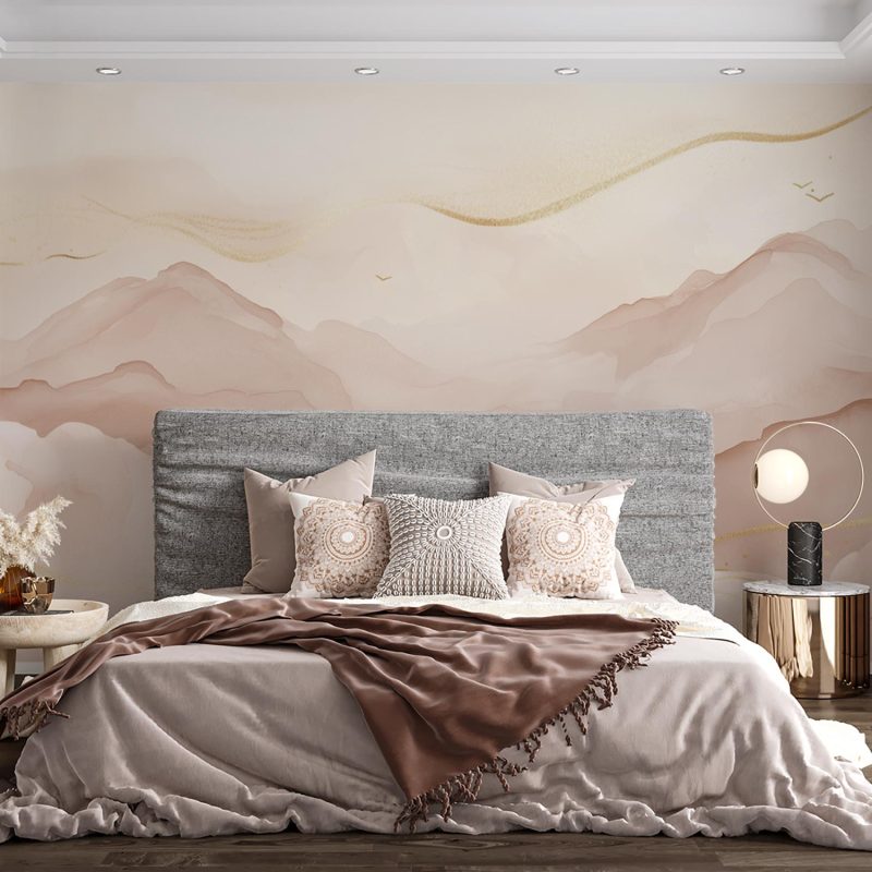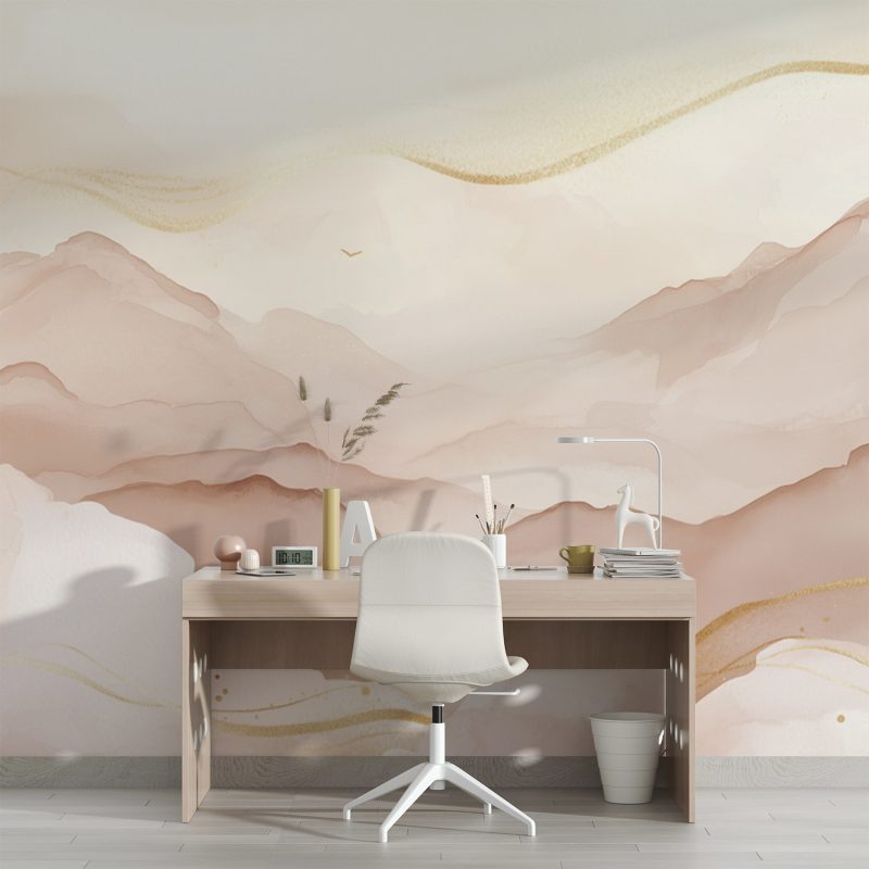 Zachte roze en beige tinten vloeien sereen in elkaar over, als een ademende bergketen bij zonsopgang. Dit watercolor behang brengt een kalme, natuurlijke harmonie in je ruimte, waar de gelaagde diepte rust uitstraalt en elke muur transformeert tot een poëtisch landschap. Ideaal voor een interieur dat verlangt naar vrede en tijdloze schoonheid.